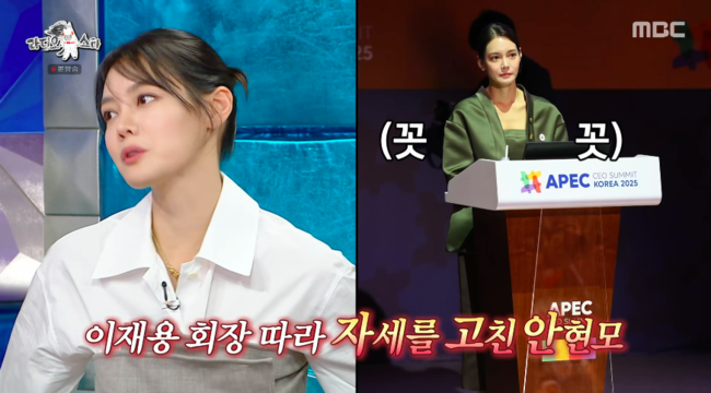 방송시청후작성된리뷰기사입니다.[OSEN=박하영기자]‘라디오스타’안현모가삼성이재용회장의사회생활에감탄했다.11일방송된MBC예능‘라디오스타’(이하‘라스’)에서는‘투머치TALKGPT’특집으로꾸며진가운데안현모가2025경주APEC국제회의진행현장비하인드를전했다.안현모는지난해‘APECCEO서밋코리아2025’등주요공식일정의진행을맡았다.그는당시이재용회장을보고교훈을얻었다고전해이목을끌었다.안현모는“개회식때몇대그룹총수님들이앉아계시는데이재용회장님이가장센터에앉았다.대통령님께서연설하시는데다른총수는등에기대어앉아있는데이재용회장님만등떼고의자끝에꼿꼿하게자세를세우고들으시더라”라고밝혔다.이어“전날밤에깐부회동도있었다.아침부터조찬이니바쁘셨을텐데정말유독허리를꼿꼿한자세로들으시는걸보고‘재드래곤회장님도사회생활을열심히하시는데나도똑바로서있어야겠다’는생각이들었다”라고전했다.그러면서안현모는“치킨발골하는것도화제가되지않았나.저희언니가아이를키우는데이재용회장님도이렇게발골하시니까너희도꼼꼼하게발골해서먹으라고한다”라고덧붙여웃음을안겼다./mint1023/@osen.co.kr[사진]‘라디오스타’방송화면캡처Copyright©OSEN.무단전재및재배포금지.