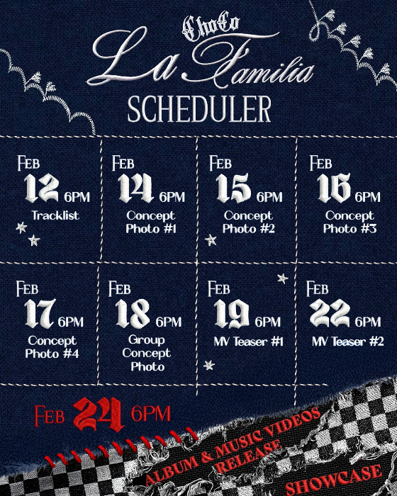 [스타뉴스|허지형기자]/사진제공=초코엔터테인먼트가수조Pd가선보이는첫패밀리앨범스케줄포스터가공개됐다.초코엔터테인먼트는지난10일오후공식SNS를통해첫패밀리앨범'초코라파밀리아(ChoCoLaFamilia)'의스케줄포스터를공개하고본격적인발매프로모션의시작을알렸다.공개된스케줄포스터에는앨범타이틀과함께자수로짜인캘린더디자인으로구성돼있어눈길을끈다.오는12일부터24일까지순차적으로공개되는콘텐츠일정이한눈에담기며첫패밀리프로젝트를향한기대감을높이고있다.스케줄에따르면'초코라파밀리아'는오는12일트랙리스트공개를시작으로,멤버별콘셉트포토가차례로베일을벗는다.이어단체콘셉트포토,뮤직비디오티저영상이순차공개돼발매열기를끌어올릴예정이다.대망의'초코라파밀리아'앨범과뮤직비디오는24일전온라인음원사이트를통해공개되며,발매당일팬들과함께하는팬쇼케이스를개최한다.이와함께첫패밀리프로젝트를장식할최종멤버구성에도관심이쏠리고있다.앞서공개된이미지포스터에는총네명의인물이등장해,이들의정체에대한궁금증을자아냈다.특히지난해방송된인기오디션프로그램'보이즈2플래닛'을통해나이답지않은탄탄한실력을입증한예찬과태조를비롯해,아직베일에가려진멤버들이어떤조합으로참여하게될지팬들의이목이집중되고있다.첫번째패밀리앨범'초코라파밀리아'는조Pd가구축해온초코엔터테인먼트의음악적색깔을하나의이름아래집약한프로젝트다.초코엔터테인먼트의핵심멤버들이참여해각자의개성과에너지를담아낸이번앨범은'마이스타일(MyStyle)','친구여'등메가히트곡을탄생시키고이정현,싸이,지코등을발굴해온조Pd의프로듀싱능력과초코엔터테인먼트만의음악적방향성과정체성을담아낼전망이다.한편,조Pd가제작한초코엔터테인먼트의첫패밀리앨범'초코라파밀리아'는오는24일오후6시전온라인음원사이트를통해발매된다.허지형기자[email protected]©스타뉴스&starnewskorea.com,무단전재및재배포금지