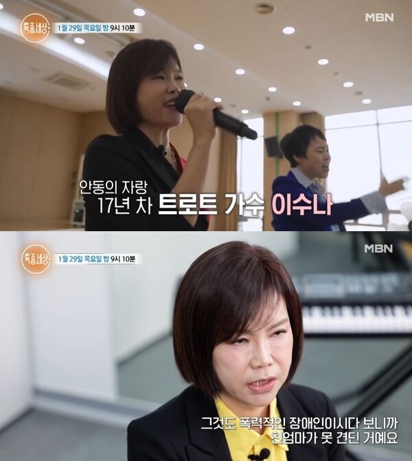 "같이살자는엄마연락거절해서미안…'사랑한다'말하고싶어"(MHN박선하기자)가족을위해평생을버텨온트로트가수이수나가가슴속에묻어둔친엄마를향한그리움을드러냈다.29일방송된MBN'특종세상'에서는대한민국대표효녀가수17년차트로트가수이수나가등장해안타까운사연을전했다.이수나는남다른가족사로큰울림을주며한경영프로그램에서우승을차지하며얼굴을알린'대한민국대표효녀가수'이다.이수나의아버지는어린시절머리를다쳐지적장애1급판정을받았고,재혼한새어머니역시지적장애1급이다.두사람사이에서태어난여동생두명또한모두지적장애를안고있다.장애가있는부모를보살피던조부모가세상을떠난뒤,가족들은친척들로부터노동착취를당하는상황에놓이게됐다.가족을지키기위해이수나는통기타하나를둘러메고서울로올라왔다.이수나는"새엄마,배다른동생이라는개념은전혀없었다.그냥내식구,내가족이었다"라며"26살부터3년에걸쳐아버지와엄마,동생둘을모두데리고서울로올라왔다"고회상했다.힘겨운상황속에서도이수나는가족을외면하지않았다.현재그는이혼후두아이를키우며지적장애를가진동생과함께생활하고있다.이수나는가족들을위해'목숨을걸자'라는각오까지다지고있다.그런이수나에게도마음에남은단하나의아픔이있었다.바로친어머니에대한그리움이다.그는"아버지가폭력적인장애인이어서,내가다섯살때친엄마가못견디고집을나갔다"고말했다.이어"엄마가스물몇살때나와함께살고싶다며연락을준적이있다"면서"하지만당시에는가족모두를돌보고있던상황이라,내짐이너무무거워거절할수밖에없었다"며눈시울을붉혔다.그는"그때는엄마가연락이와서반갑다는마음보다는'왜연락을했지?'라고생각했다"며"시간이지나고보니엄마의자리를이해하게됐다.원망보다는다이해한다는말을꼭전하고싶다.미안하고보고싶다"고털어놨다.이수나는친어머니의행방을찾기위해고모를찾았다.고모는"네엄마가집을떠난뒤한번찾아온적이있다"면서"나를끌어안고아이들이보고싶다며울었다.하지만네아버지가재혼해아이를둘낳았다는이야기를듣고다시떠났다"고전했다.해마다이수나는행정복지센터에서주민등록등본을발급받고있다.등본속친어머니의마지막주소는안동으로기재돼있다.그는"제고향이안동인데안동에계시네요"라며울먹였다.이수나는곧바로안동으로향했다.그러나지도상주소는동네행정복지센터였고,주민등록말소로실제거주지는확인할수없었다.수나는"저때문에또아예사라지셨나하는생각이든다"며슬픔에잠겼다.그럼에도이수나는친어머니를찾는일을포기하지않겠다고했다.그는"가족은저를버티게해주는버팀목이자원동력"이라면서"엄마를만약에만나면꼭안아드리고사랑한다고말해주고싶다"고했다.사진='특종세상'방송화면Copyright©MHN.무단전재및재배포금지.