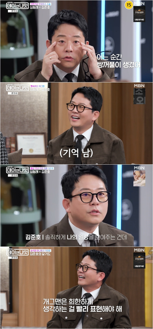 MBN토크쇼‘김주하의데이앤나잇’김준호가토요일밤,즐거운웃음폭탄을날렸다.지난7일(토)방송된MBN‘김주하의데이앤나잇’11회에서는김준호가출연해센스넘치는토크로스튜디오를들썩거리게했다.이날김준호는안검하수수술을하게된배경을고백했다.그는“코미디표정을짓느라얼굴근육을많이써서주름이빨리생긴다”고말해웃음을자아냈다.또한성형수술에대해묻는김주하의질문에그는“9살연하아내가있어서맞춰줘야한다”며개그계대표사랑꾼임을드러내훈훈함을더했다.이어김준호와김지민부부의결혼생활에대한대화가오갔다.김지민과의결혼생활이‘방송용사랑’이라는의혹에김준호는“일부는인정합니다”라고깜짝발언을해모두를놀라게했다.그는“나의일상이김지민을사랑하는것이라그모습을보고시청자들이피로감을느낀것같다”며로맨티스트임을입증했다.김준호는개그를시작하게된의외의계기를털어놓기도했다.고교시절연극을했다는그는“앞에서조금웃기고했더니미팅이많이들어왔다”며연예인의꿈을꾸게된솔직한이유를설명했다.레전드코너‘같기도’탄생비화도공개했다.개그맨홍인규와슈퍼를갔는데,사장님이동안외모인홍인규를보고“애도아니고어른도아니고희한하네”라고말을한것에리듬을붙여서사용하게된것이큰사랑을받았다고전했다.또한김준호는영화제작에대한원대한포부를드러내기도했다.“진지한코미디영화를만들어보고싶다”고말하며실제시나리오와시놉시스작업도해놓았다고밝혀모두를놀라게했다.마지막으로김준호는“인생은멀리서보면희극,가까이서보면비극이라고했지만김지민씨를만나고가까이서도희극으로바뀌었다.희극배우김준호가되겠다“고훈훈하게마지막인사를전했다.사랑과일,그리고새로운도전까지멈추지않는김준호가앞으로어떤행보로대중을사로잡을지귀추가주목된다.[MBN스타박소진기자[email protected]]<CopyrightⓒMBN(www.mbn.co.kr)무단전재및재배포금지>Copyright©MBN.무단전재,재배포및AI학습이용금지.