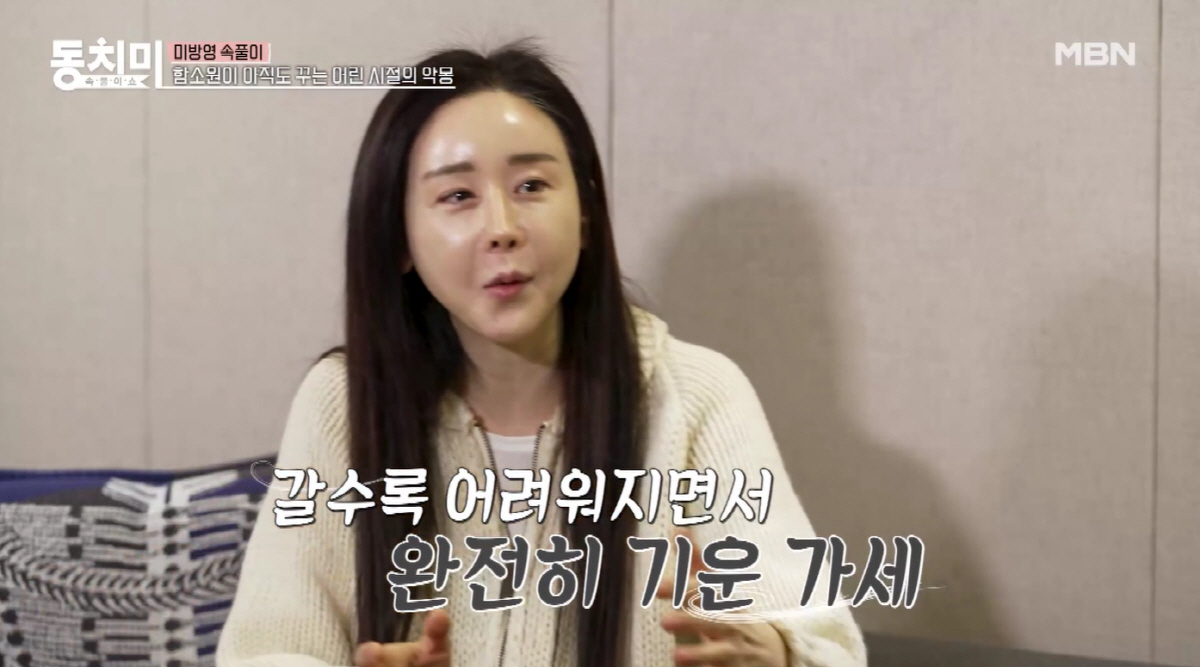 [스포츠조선김소희기자]배우함소원이힘겨웠던어린시절로인한트라우마를털어놨다.8일MBN예능프로그램'속풀이쇼동치미'측은"함소원이아직도꾸는어린시절의악몽"이라는제목의미방영영상을공개했다.영상속에서함소원은이광민정신건강의학과전문의를찾아상담을진행했다.함소원은어린시절을떠올리며점점어려워졌던가정형편을담담히전했다.그는"처음에는큰집에살았다.그런데집안사정이안좋아지면서집을세를주게됐고,또더안좋아져집을팔았다.이후전세로옮겼다가그것도힘들어월세로,월세도어려워옥탑방으로갔다"며"결국지하방에서살게됐다"고회상했다.이어"제가사실반복해서꾸는꿈이세가지정도있다.어릴때부터지금까지계속꾼다"고고백했다.그중하나는따뜻한기억이담긴좋은꿈이라고했다.함소원은"엄마가멸치나새우같은건어물을포장해서시장에내다파셨다.엄마가포장하면삼형제가나란히앉아촛불로지졌다"며"촛불이오래타면나는냄새,비닐타는냄새,졸다가머리카락이살짝타는냄새까지어릴때향수처럼남아있다"고말했다.이어"그분위기가너무행복했다.온화했고따뜻했다.그꿈을꾸고나면기분이참좋다.그건좋은기억"이라며미소를지었다.그러나나머지두가지꿈은지금까지도이어지는악몽이었다.함소원은"초등학교5학년때큰수해를겪었다.변기에서오물이역류하는걸직접봤다.지하실에서살때였다"며"그일을1년에서너번씩겪었다.물이목까지차올라수영해서나오기도했다"고전해충격을안겼다.이에이광민전문의가"완전영화'기생충'같다"고놀라자,함소원은"맞다.그런데그위치가압구정동이었다"고덧붙여씁쓸함을더했다.함소원은"그이후로꿈속에서도화장실가는걸참고있다가,잠에서확깨면'아,꿈이구나.나화장실갈수있지.우리집화장실깨끗해'하면서안도한다"고말해안타까움을자아냈다.마지막악몽에대해서도생생히전했다.그는"삼남매끼리집에있는날이많았는데,너무배가고팠다.그러다라면두개를찾아끓였는데,미납때문인지전기가중간에나갔다"며"불이꺼져아무것도안보이는상황에서배가고파손으로라면을먹으려다손은뜨겁고,배는고프고,불까지나가니너무서러워서울음이터졌다"고눈시울을붉혔다.이어"언니오빠가슬플까봐말도못하고혼자울면서라면을먹고있었는데,느낌에언니오빠도같이울고있는것같더라"며"그날의기억이너무슬퍼서지금도제가많이힘들면그꿈을꾼다"고털어놨다.끝으로함소원은"그꿈을꾸고나면한참동안마음을진정시켜야한다"고말해깊은여운을남겼다.Copyright©스포츠조선.무단전재및재배포금지.