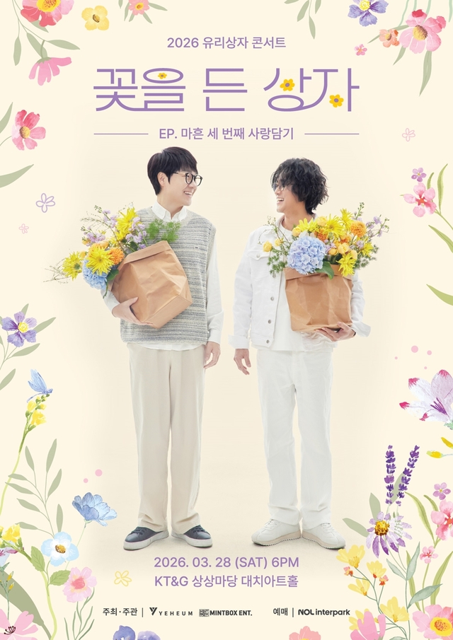 듀오유리상자콘서트포스터감성듀오유리상자가봄을맞아콘서트를연다.유리상자는오는3월28일오후6시,서울KT&G상상마당대치아트홀에서‘2026유리상자콘서트〈꽃을든상자〉(부제:마흔세번째사랑담기)’를개최한다.유리상자측은“이번콘서트는‘꽃을든상자’라는타이틀에맞춰,겨우내쌓인마음을풀어내고새로운계절을맞이하는순간을노래로전하는데초점을맞춘다”면서“유리상자특유의서정적인감성과따뜻한메시지를중심으로,관객들이편안하게즐길수있는구성으로무대를채울예정”이라고밝혔다.한편,‘2026유리상자콘서트〈꽃을든상자〉’티켓은2월4일오후2시NOL티켓(구인터파크티켓)을통해예매가시작된다.안진용기자Copyright©문화일보.무단전재및재배포금지.