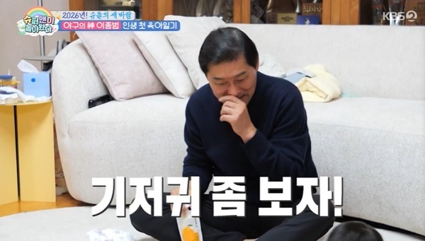 KBS2TV‘슈퍼맨이돌아왔다’KBS2TV‘슈퍼맨이돌아왔다’[뉴스엔유경상기자]이종범이손자육아에완벽한모습으로감탄을자아냈다.2월4일방송된KBS2TV‘슈퍼맨이돌아왔다’(이하‘슈돌’)에서는야구레전드이종범이25개월손자태현이와함께합류했다.이종범이외손자태현이와처음으로단둘이시간을보내게되자김종민이“아빠육아가아니라할아버지육아는처음”이라고말했다.랄랄은“아빠가서빈이를24시간본다?제가출근을안하겠다.불안하다”고반응했다.하지만이종범은“집에서6개월을같이살아서친근감이있다.어린이집하원은자주간다.잘할수있을것같다”고자신감을드러냈다.그자신감그대로그동안‘슈돌’에등장한육아에서툴렀던할아버지들과달리이종범은손자의손발톱을깎고기저귀를가는것까지완벽하게해냈다.랄랄이“우리아빠도이렇게해주면좋겠다”며감탄할정도.이종범은세심하게통풍에신경쓰며기저귀를돌돌말아뒤처리까지완벽하게해냈다.이어손자와놀아주며발까지무는이종범의모습은영락없는손자바보.태현이의입술이건조한것을발견한이종범은“입술이왜이렇게터서”라고속상해하며립밤을듬뿍발라줬고,김종민이“입술만바르는게아니라다바른다”며폭소했다.(사진=KBS2TV‘슈퍼맨이돌아왔다’캡처)뉴스엔유경상yooks@기사제보및보도자료[email protected]ⓒ뉴스엔.무단전재&재배포금지Copyright©뉴스엔.무단전재및재배포금지.