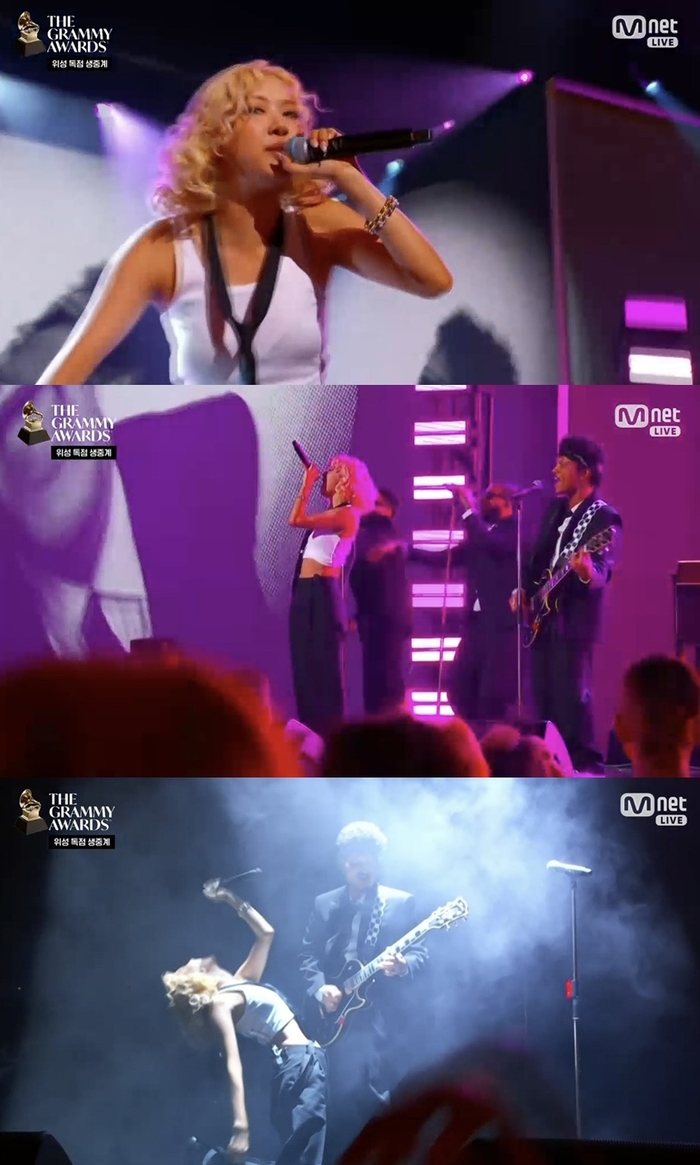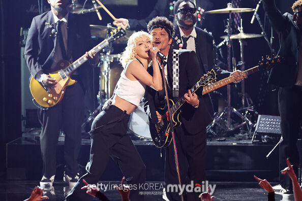 로제와브루노마스가그래미어워즈오프닝무대를꾸몄다.사진ㅣ엠넷그룹블랙핑크의로제와미국팝스타브루노마스가미국그래미어워즈오프닝무대를맡아떼창을이끌어냈다.로제와브루노마스는1일(현지시간)미국로스앤젤레스그립토닷컴아레나에서개최된‘제68회그래미어워즈’오프닝공연주인공으로나섰다.무대시작과함께브루노마스에게볼뽀뽀를선사한로제는글로벌히트곡‘아파트’를열창하며존재감을과시했다.특히로제는무대곳곳을누비며격한동작도불사하는등엄청난퍼포먼스를선보여눈길을끌었다.또한노래도록느낌을가미한편곡으로흥을더했다.로제.사진ㅣ연합외신로제는이번시상식에서팝스타브루노마스와의협업곡‘아파트’로본상인‘올해의노래’와‘올해의레코드’를포함해‘베스트팝듀오/그룹퍼포먼스’까지총3개부문후보에올랐다.그러나사전시상식에서진행된‘베스트팝듀오/그룹퍼포먼스’부문에서는수상까지이르지못했다.해당부문수상작으로신시아에리보와아리아나그란데의‘디파잉그래비티’가호명됐다.이에로제의‘아파트’와더불어‘케이팝데몬헌터스’OST‘골든’,캣츠아이의‘가브리엘라’(Gabriela)등후보에함께올랐던K팝분류곡들역시고배를마셨다.‘아파트’는지난해9월미국4대대중음악시상식중하나인‘MTV비디오뮤직어워즈’에서주요상인‘올해의노래’를차지하며그래미어워즈수상에대한기대감을높인상황이다.아울러‘아파트’는미국빌보드메인싱글차트‘핫100’에서자체최고순위3위를찍었으며해당차트에만45주간진입했다.이는K팝여성솔로가수로서최고성적이며K팝최장진입기록이다.[지승훈스타투데이기자]Copyright©스타투데이.무단전재,재배포및AI학습이용금지