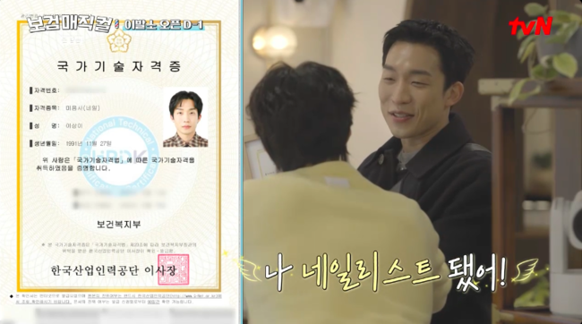 방송시청후작성된리뷰기사입니다.[OSEN=박하영기자]‘보검매직컬’이상이가네일국가자격증을따면서정식네일리스트가됐다.30일첫방송된tvN새예능‘보검매직컬’에서는이발소오픈을앞두고박보검과이상이가국가자격증에도전하는모습이그려졌다.군대에서이미이용사자격증을획득한박보검은어머님들께파마를해주고싶은마음에미용사자격증까지도전하는모습을보였다.반면,이상이는“네일국가자격증준비하고있다”라며크고거친손으로네일리스트에도전한다고밝혔다.그는“붓이너무작다”면서도“실기도하고필기도공부한다.필기는조금까먹을까봐.아직공부많이못했다”며직접공부한노트를공개했다.곽동연은간식담당을맡았다.그는붕어빵달인을직접찾아가비법을전수받았고집에서연습또연습하는열정을드러냈다.이발소오픈D-1,이상이는영업신고서,이용사자격증이걸려있는벽을보더니“나도옆에걸어도될까?”라며네일국가자격증을꺼내보였다.이상이는“나네일리스트됐다”라며수줍게자랑했고,자신의자격증까지걸더니“기분이이상하다.(영업신고증)거니까마음이진지해진다.우리한번다연습해봐야겠다”라고다짐했다./mint1023/@osen.co.kr[사진]‘보검매직컬’방송화면캡처Copyright©OSEN.무단전재및재배포금지.