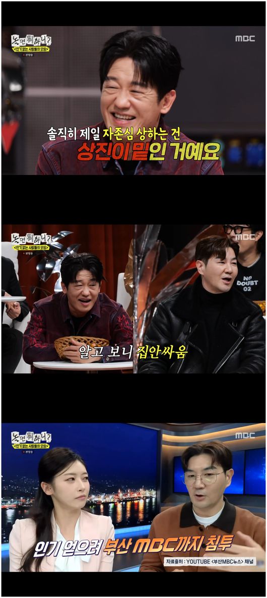 [OSEN=오세진기자]‘놀면뭐하니?’배우허성태가한상진에게밀린인기에더충격을받았다.6일방송된MBC예능‘놀면뭐하니?’에서는지난주와달라진인기투표순위가공개됐다.투컷은1위에서한순위내려갔고,정준하는기적의1위를차지했다.그의인기를위한몸사리지않는노력이많은이의감명을울렸기때문이었다.허성태와한상진은하위권을예약했다.누가과연꼴찌를할것인가.허성태와한상진은투닥거렸다.이들은"같은회사여서더싫다"라며치를떨어웃음을안겼다.패널들은"집안싸움이냐"라며놀렸다.한상진은8위,허성태는9위로꼴찌를도달했다.허성태는“저는사실한상진밑이라는게정말싫다”라며꼴찌란사실보다이것이더싫다고말했다.한상진은“저는지난주부산MBC뉴스까지출연하면서투표를독려했는데”라며축처진얼굴이되었다.그러자하하는“저런점이매력이없는거야”라며지적했다.허성태는"제가드라마촬영때문에얼굴을비치지못했다.그러나이제더열심히할것이다"라며열의를보였다./[email protected][사진출처]MBC예능‘놀면뭐하니?’Copyright©OSEN.무단전재및재배포금지.