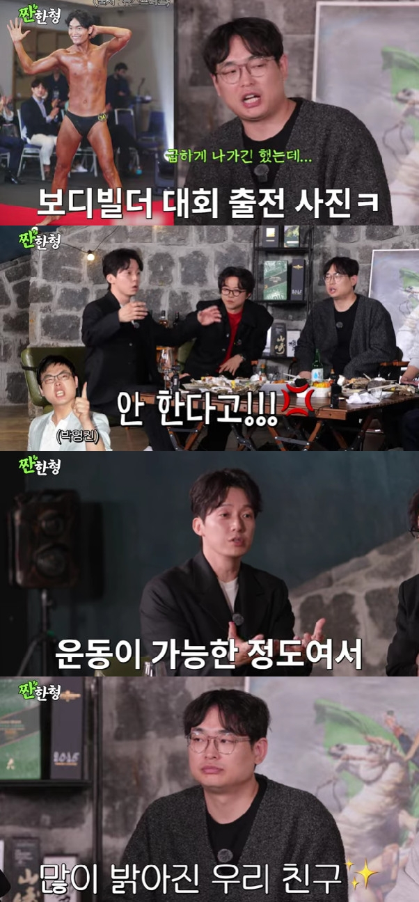 [스타뉴스|김나연기자]사진=유튜브채널짠한형신동엽코미디언박영진이과거심근병증진단을받았던사실을고백했다.6일유튜브채널'짠한형신동엽'에는'웃기고있는데불안하네'라는제목의영상이공개됐다.공개된영상속에는박성광허경환박영진이출연해다양한이야기를나눴다.이날박영진이과거보디빌더대회에출전한사진이공개됐고,허경환은"마흔살에대회를한번나가보자고해서준비했다.근데당시(박)영진이가몸이안좋았다.확장성심근병증이있었다"고밝혔다.박성광은"(박영진이)결혼한지얼마안됐을때인데코로나때여서행사도없으니까금전적으로도부족하고,이래저래힘들었던시기였다"고덧붙였다.이어허경환은"그때내가아는박영진이랑다른애가돼있더라.'마흔파이브로대회한번나가자'라고했더니안한다고짜증을내서놀랐다.진단서를봤는데운동이가능한정도여서시작했고,대회나가고부터너무밝아졌다"고이야기했다.박영진은"그때처음으로운동하고,최저몸무게도찍었다.(허)경환이랑양치승관장님이힘을줬다.너무고마웠다.주변에서힘을주는게필요한거같다.주변에서이렇게잡아주는사람이있는것중요한것같다"며"지금은제아내가저를많이잡아주고있다"고고마운마음을전했다.김나연기자[email protected]©스타뉴스&starnewskorea.com,무단전재및재배포금지
