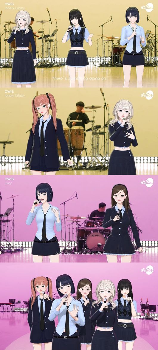 [OSEN=최이정기자]OWIS가독보적인가창력으로글로벌팬들의마음을사로잡았다.버추얼걸그룹OWIS(오위스,세린·하루·썸머·소이·유니)는지난6일유튜브채널'잇츠라이브'(It'sLive)를통해밴드버전으로재탄생한데뷔타이틀곡'MUSEUM'(뮤지엄)과수록곡무대를공개했다.먼저'MUSEUM'으로포문을연OWIS는보컬에집중한구성으로귀를사로잡았다.밴드사운드를입혀한층풍성해진곡위에호흡까지느껴지는생생한라이브가더해지며현장감을배가했다.특히시원하게뻗어나가는고음과촘촘하게쌓아올린하모니는감탄을불렀다.수록곡'lonelylullaby'(론리럴러바이)와'juicy'(쥬시)무대에서는OWIS의폭넓은음악성이돋보였다.이들은가성을넘나드는클래식재즈와달콤한알앤비팝감성을고루소화했다.멤버들은추임새와함께무대자체를즐기는모습으로보는이들에게기분좋은에너지를전달했다.이어세린은"멋진밴드와노래를들려드릴수있어영광이다.저희는늘꿈속세상에있지만오늘은더욱더행복한꿈을꾼기분이다"라고첫출연소감을전했다.또썸머는"열심히준비한만큼함께즐겨주셨으면좋겠다"라며"앞으로도OWIS를향한많은관심과사랑부탁드린다"라고덧붙였다.한편지난달23일정식데뷔한OWIS는각종음악방송과예능프로그램,온·오프라인콘텐츠등을통해활발한데뷔활동을이어가고있다./[email protected][사진]'잇츠라이브'유튜브채널Copyright©OSEN.무단전재및재배포금지.