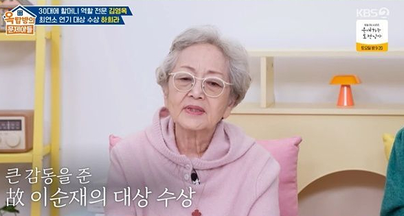 배우김영옥이지난해말세상을떠난고(故)이순재를회상했다./사진=KBS2'옥탑방의문제아들'방송화면배우김영옥이지난해말세상을떠난고(故)이순재를회상했다.지난8일방송된KBS2예능프로그램'옥탑방의문제아들'(이하'옥문아')에서는게스트로김영옥과하희라가출연했다.이날김영옥은"할머니연기를28살에연극에서했고,31살에TV에서했다"라고노년연기를일찍시작했다고말했다.볼살이없던탓에할머니분장이잘됐다는그는"지금보면어린티가난다"라고말해웃음을자아냈다.배우김영옥이지난해말세상을떠난고(故)이순재를회상했다./사진=KBS2'옥탑방의문제아들'방송화면김영옥은"변희봉,김갑수,노주현,한진희가내아들역을했다"며"이정재,공유,유승호도손자였다.제일늙은아들이신구,이순재선생"이라고밝혀놀라움을안겼다.김영옥은심지어3살연상인이순재가자신의아들역할을했다며"상은이것저것타봤지만,대상은못타봤다.이순재선생님은내가착각했다.일찍타신줄알았다.너무좋은역할을많이하셨기에또잘하고.아무도대상을안드렸다는게이상했다"라고말했다.MC송은이는"작년에수상하셨을때모습이많은사람들에게감동을줬다"라며2024년KBS연기대상에서이순재가대상을받았던당시를떠올렸다.김영옥은이순재에대해"그러고나서돌아가시니까"라고안타까움을드러냈다.그는"짱짱하고자기관리잘하시고오로지연기에모든것을건사람이었다.아플때도하고싶은거없냐고여쭤봤더니'연기만하면된다'고하셨다"고그리움을전했다.이순재는지난해11월25일향년91세로세상을떠났다.마아라기자[email protected]©머니투데이&mt.co.kr.무단전재및재배포,AI학습이용금지.