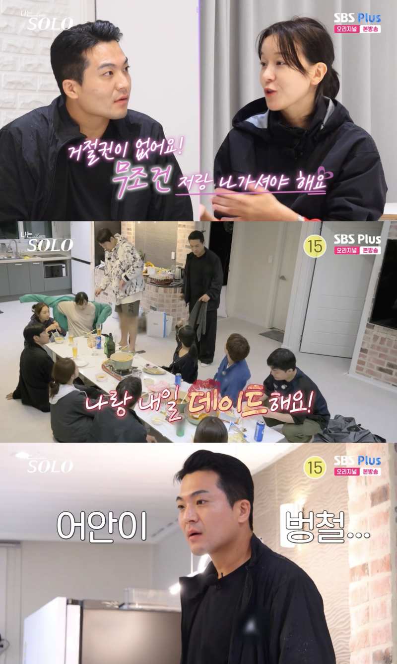 ⓒENA,SBSPlus'나는솔로'[스포츠한국신영선기자]'나는솔로'29기영철이솔로나라후반부인기남으로떠올랐다.7일방송된ENA,SBSPlus'나는솔로'에서는슈퍼데이트권을가진솔로남녀들이데이트를신청하는모습이그려졌다.이날슈퍼데이트권을받은영숙은역시데이트권을가진영호를불러생각을물었다.영호는자신은영숙에게데이트권을쓸테니영숙은영철에게데이트권을쓰라고먼저제안했다.영호는"영숙님의마음을알아가기위한최고의선택인거같다"며영숙을배려했고,영숙은고맙고미안하다고인사했다.영숙은다음으로영철을불러냈고"제가1순위냐"고물었다.영철이"첫번째로생각하고있다.1번은바뀌지않는다.정숙님에대한오해는풀렸다"고솔직히말했다.이에영숙은영철에게슈퍼데이트권을쓰겠다며"거절권이없다.무조건저랑나가셔야한다"고데이트신청을했다.영철은공용거실로가"영호야,고맙다"라고말했다.이를통해영호가영숙에게,영숙은영철에게슈퍼데이트권을쓴사실을알게된정숙은"나도영철님한테쓸건데?"라고여럿이있는데서선언했다.정숙은뒤에서있는영철을보며"나랑내일데이트해요"라고말했다.영철은어리둥절한표정을지지었고"나는못따고호강을갑자기…"라며"담배끊어야되겠다"고혼잣말을했다.그는마침공용거실에들어오는영숙을데리고나가정숙이자신에게데이트권을썼다고보고했다.인터뷰에서영철은"기분이묘하다.없을때가편하다.이렇게(관심이)오니까이상하게엄청더어려워졌다.건방지지만그래도지금까지는무조건영숙님이다.100:0"이라고털어놨다.정숙은"저희아버지랑비슷한면도많고저는영철님의마음이나생각이이해가많이가더라.오늘랜덤데이트가신의한수가아니었나.좋았다"고영철에게커진마음을밝혔다.영철은영숙,정숙에게데이트메뉴로홍어를제안했다.그는인터뷰에서"거절을어떻게하느냐가궁금했다"며테스트였다고말해좋아지던이미지를깎아먹었다.스포츠한국신영선기자[email protected]©스포츠한국.무단전재및재배포금지.