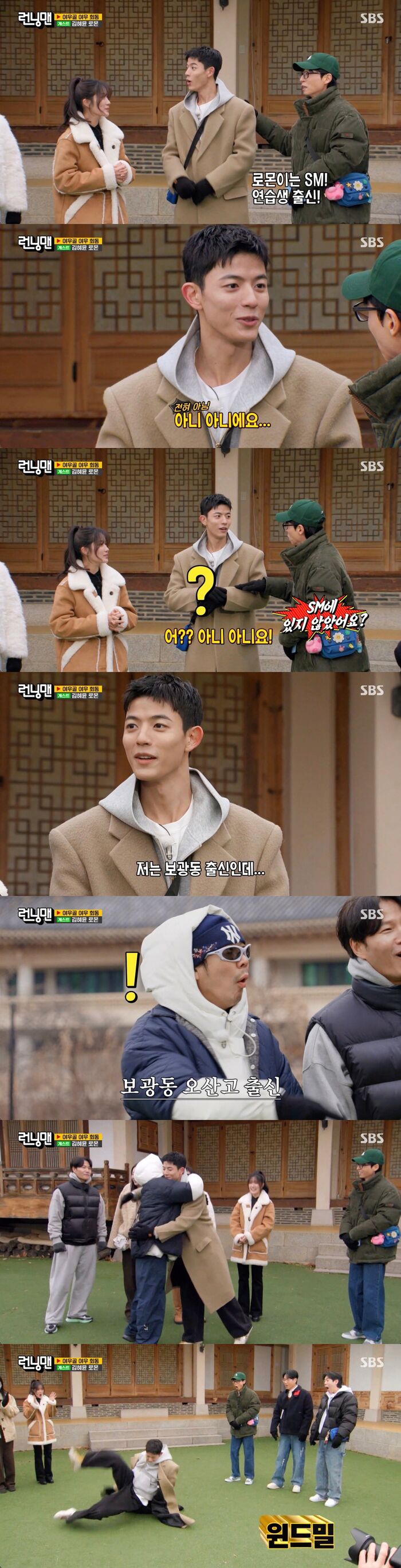 [SBS연예뉴스|김효정에디터]신인배우로몬이예능신고식을치렀다.25일방송된SBS'런닝맨'에서는드라마'오늘부터인간입니다만'의로몬과김혜윤이게스트로등장했다.이날방송에서유재석은로몬에대해"SM연습생출신이다"라고소개했다.그러자로몬은"아니아니에요"라고손사래를쳤다.유재석은"SM에있지않았어요?아이돌연습생아니에요?"라고물었고,로몬은아니라고팩트를정정했다.이에지석진은"그럼어디출신이에요?"라고물었다.그러자로몬은"저는보광동출신이다"라며하하를바라보았다.그리고그는"선배님저오산중학교나왔습니다"라고말해하하의뜨거운환영을받았다.보광동오산고출신의하하는로몬을보며갑자기교가를불렀고이에로몬도함께불러웃음을자아냈다.그리고하하는"전화번호교환하자.이제부터우리맞팔이야"라고애착동생하나를추가해눈길을끌었다.한편이날로몬은어린시절빠졌던비보잉실력을직접선보여런닝맨의뜨거운박수를받았다.Copyright©CopyrightⓒSBS.Allrightsreserved.무단전재,재배포및AI학습이용금지