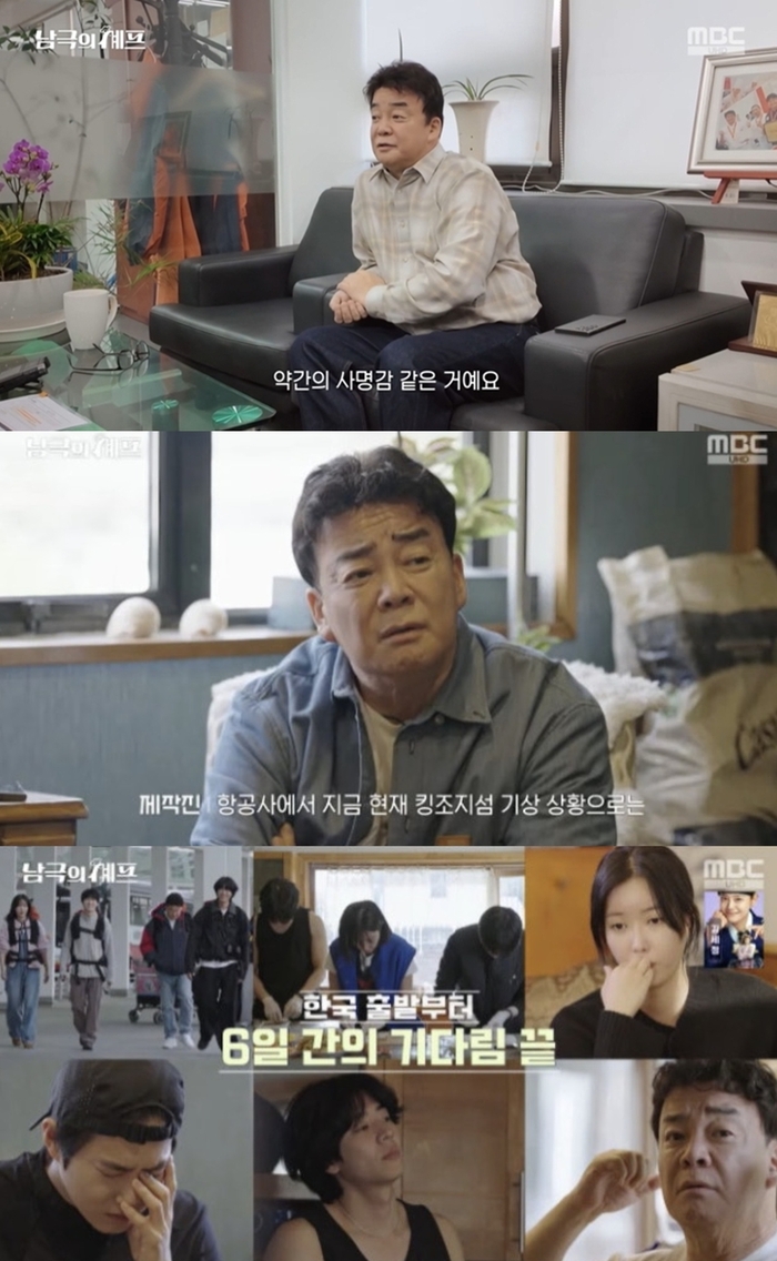 ‘남극의셰프’.사진|MBC‘남극의셰프’멤버들이어려운환경속에서남극에들어가는모습이공개됐다.지난17일첫방송된MBC교양프로그램‘남극의셰프’에서는백종원과임수향,수호,채종협이남극세종과학기지를찾아가는모습이전파를탔다.백종원은“지금진짜로기후가(심각하다)”며“이번여름에깜짝놀랐다.배추값이장난아니었다.남극은기후변화의제일시작이다”라고말했다.이어“그걸연구하기위해가있는분들이힘들게잘버텨주고있다.‘내가뭘해줄수있는게있을까’(생각했다)”며“‘할수있으면해야지’이런약간의사명감같은것”이라고했다.남극을명예대원자격으로방문하는것은처음있는일이었다.제작진은“대원의자격으로펭귄마을이나세종기지등을(방문한다)”며“이런곳은외교부나환경부의허락이있어야지들어갈수있다”고설명했다.백종원은“그러면진지해진다.부담이없는게아니다.사실부담은있었다”고털어놨다.그러면서“맛으로만가지말고,의미있는식사를한번만들어보자”고다짐했다.남극으로향하기전,생존훈련을받기위해멤버들이모였다.백종원은“문제는(남극에서)채소가귀하다고한다.식재료가거의냉동이라고한다”고고민을털어놨다.임수향은“저희가양념도못들고가는거냐.뭔가해주고싶으면어떻게하냐”며아쉬워했고,수호는“백종원은다만들수있다”고무한믿음을보였다.백종원은“아니다.다못만든다.다시다랑미원을어떻게만드냐”며당황했다.네사람은스페인마드리드와칠레산티아고를거쳐한국출발약40시간만에남극으로들어가는관문인푼타아레나스공항에도착했다.이들은비행편으로남극에들어갈예정이었으나,갑작스러운기상악화로인해비행이취소되면서푼타아레나스에발이묶였다.백종원은“첫날비행편이취소됐다고해서그럴수있다고생각했는데,(계속되면서)‘정말선택받은자에한해서들어갈수있구나’라는생각을했다.그런데못들어가면어떻게하느냐”며불안해했다.이들은기상상황을보면서기다렸고,대기5일차만에남극으로들어갈수있었다.제작진이“내일오전7시입남극이확정됐다.첫번째비행기로간다”고밝히자모두가박수를치며반겼다.비행기로남극에들어간이들은40여분간고무보트를타고세종기지로향했다.기지의주방을책임지고있는안치영대원은“남극에서즐거움이라는게크게없다”며“하루세끼먹는게대원들에게는가장큰즐거움이다”라고말했다.그러면서“1년간고립된환경속에서즐거움을최대한주고싶지만,외식을못한다는걸대원들이힘들어한다.대원들이항상하는말이‘(세종기지)음식도맛있지만,누군가가해주는음식이있었으면좋겠다는것”이라고설명했다.방송말미예고편을통해백종원을비롯해임수향,수호,채종협이본격적으로대원들을위해부족한재료들을가지고식사를준비하는모습이공개돼기대감을높였다.‘남극의셰프’는사명감하나로혹독한남극환경에고립되어살아가는월동대원들을위해따뜻한한끼를대접하는과정을담는프로그램이다.지난해11월이미촬영을마친‘남극의셰프’는지난4월방영예정이었다.그러나MBC측은“뉴스특보및조기대선정국”을이유로방영을연기했다.이후출연자인백종원이이끄는더본코리아가올초햄선물세트고가논란을시작으로식품위생법과식품표시광고법위반,농지법위반,원산지표기오류논란등에휘말리면서여론이악화되자방송은무기한연기됐다.백종원은지난5월더본코리아를통해사과문을내고“기업쇄신에집중하겠다”며“모든방송활동을중단하겠다”고선언했다.이후방송출연은물론공식석상에서는것을자제해온백대표는이날방송을통해6개월만에시청자들과만났다.백종원은‘남극의셰프’에이어넷플릭스예능‘흑백요리사2’를통해오는12월에도시청자들을만날예정이다.[김소연스타투데이기자]Copyright©스타투데이.무단전재,재배포및AI학습이용금지