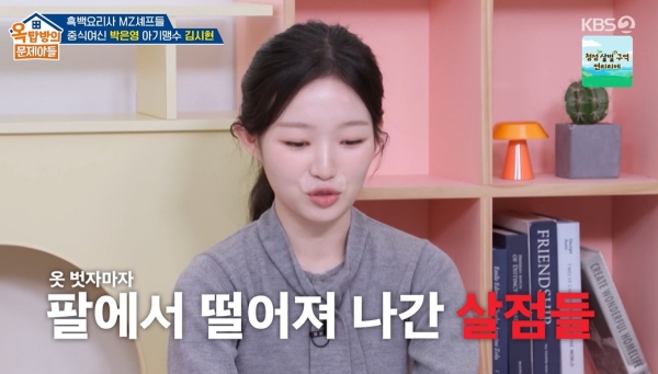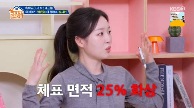 방송시청후작성된리뷰기사입니다.[OSEN=박하영기자]‘옥탑방의문제아들’김시현이크게다쳤던일화를전했다.2일방송된KBS2TV‘옥탑방의문제아들’(이하‘옥문아’)에서는화제의요리서바이벌'흑백요리사'를빛낸MZ셰프,‘중식여신’박은영셰프와‘아기맹수’김시현셰프가출연했다.이날김시현은주방에서일하다다친적이없냐는물음에“옛날에화상한번크게있었다.일하다가한달정도입원했다.그때팔이랑얼굴이랑체표면적25%이상화상을입었다”고고백해모두를놀라게했다.이어“뜨거운물을식사중에차를드시는데끓이고나르는과정에서바닥이미끄러워서쭉넘어졌다.제가계단밑으로추락했다.그래서팔에붓고얼굴이랑번졌다”라고회상했다.김시현은“조리복이다순면이어서너무놀라서건져지고나서찬물로긴급처방했는데옷을벗으니까팔에살이떨어져나갔다.바로입원해서처음에1~2달입원해야한다고했다”라고설명했다.회복다했냐는물음에김시현은“처음에미라처럼감겨있었다.상반신이감겨있어서앞에다른화상환자들보면얼굴녹아내리신분들도있고,저도너무무서웠다.그래서그때아빠면회도안봤다.누군가를보기힘들었다”라고털어놨다.현재는화상자국은거의다없다고.김시현은“화장지우면살짝있다.저만아는(자국)”이라며동료들도움으로트라우마는극복했다고전했다./mint1023/@osen.co.kr[사진]‘옥탑방의문제아들’방송화면캡처Copyright©OSEN.무단전재및재배포금지.