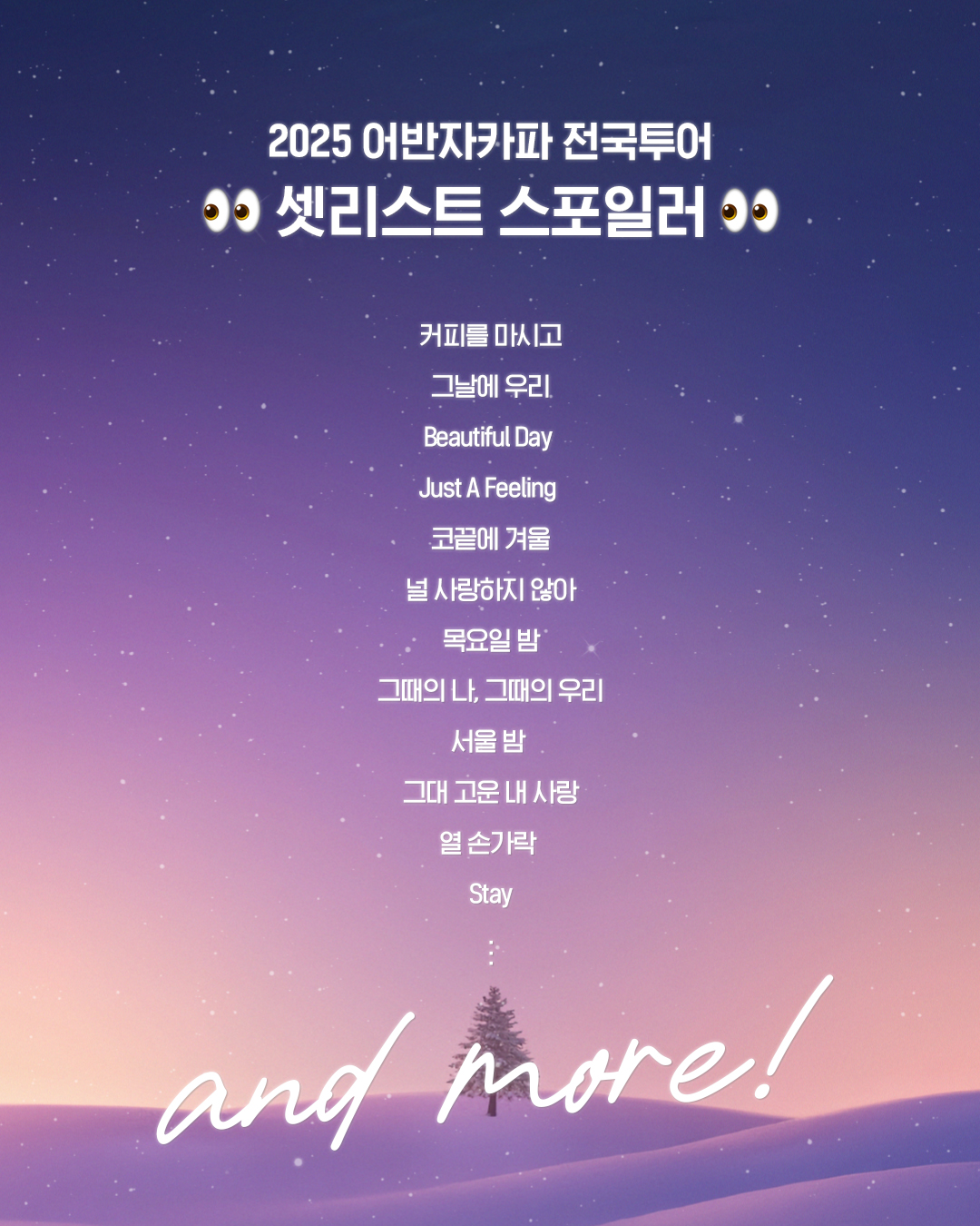 그룹어반자카파(URBANZAKAPA)가전국투어콘서트일부세트리스트(선곡표)와메들리영상을공개했다.어반자카파는18일오전공식SNS계정을통해전국투어콘서트세트리스트일부가담긴이미지를공개했다.데뷔곡'커피를마시고'를비롯해'그날에우리','BeautifulDay','JustAFeeling','코끝에겨울','널사랑하지않아','목요일밤','그때의나,그때의우리','서울밤','그대고운내사랑','열손가락','Stay'등히트곡과신곡을포함한12곡이예고됐다.함께공개된메들리영상에는권순일,조현아.박용인이주요곡을라이브로들려주는장면과오케스트라와의협연장면이담겼다.앞서어반자카파는지난3일약4년만의EP앨범'STAY'를발매했다.팝,R&B,발라드,모던록등여러장르를섞은신보로,수지와이도현이출연한타이틀곡뮤직비디오가포털사이트와유튜브인기영상에오르며화제를모았다.한편어반자카파전국투어콘서트는광주(11월22일)를시작으로서울(11월29~30일),부산(12월6일),성남(12월13일),대구(12월25일)등에서열린다.신년초까지추가공연이예정돼있으며,예매및상세정보는티켓링크에서확인할수있다.[사진제공=앤드류컴퍼니]YTNstar곽현수([email protected])*YTNstar에서는연예인및연예계종사자들과관련된제보를받습니다[email protected]로언제든연락주시기바랍니다.감사합니다.[저작권자(c)YTN무단전재,재배포및AI데이터활용금지]Copyright©YTN.무단전재및재배포금지.