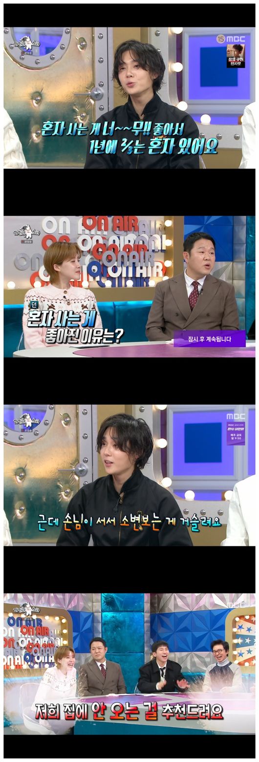 <리뷰:방송시청후작성된리뷰기사입니다.>[OSEN=오세진기자]‘라디오스타’뎐의깔끔한성정이공개됐다.7일방영된MBC예능‘라디오스타’에서는가수뎐이등장했다.뎐은마른몸매의보유자로유명했지만,운동을시작했다고밝혔다.그는"이렇게살다가죽을까봐"라고이유를말했다.장도연은“뎐이‘나혼자산다’를꿈꾼다고하는데”라며물었다.뎐은자신만의인테리어센스로중고시장에서구입한가구들을조합해자신만의매력이담긴2층저택에서살고있다.뎐은“집이너무좋아서,혼자살다보니까너무좋더라.그래서1년에2/3는거의혼자있는데”라면서“그래도비즈니스를해야하니까,사람들을집으로부른다.같이놀고,그러는건너무좋다.딱한가지가걸린다.나는앉아서소변을누는데,이걸말하기가어렵다.친구들은말할수있지만,비즈니스미팅으로온사람한테소변을앉아서봐달라고할수없다”라며고충을하소연했다.이어뎐은“사실소변을서서누면사방으로다튄다”라면서“소변이튀는게너무싫었습니다.앞으로앉아서누지않으시려면,제집에오지않으시길추천드린다”라고말해웃음을안겼다./[email protected][사진출처]MBC예능‘라디오스타’Copyright©OSEN.무단전재및재배포금지.