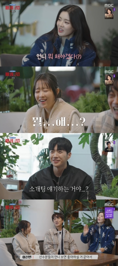 ‘마니또클럽’.사진lMBC‘마니또클럽’멤버들이야구선수들을위해직접나섰다.5일오후방송된MBC신규예능‘마니또클럽’에는다함께울산행열차에탄3기멤버차태현,박보영,이선빈,황광희,강훈의모습이보였다.이날방송에서울산에도착한멤버들은울산웨일즈의장원진감독과만나첫일정을시작했다.알고보니시크릿마니또고래는울산웨일즈선수단이었던것.선수들나이대가20대중반이라고하자이선빈은“보영언니뭐해야겠다.스물다섯에서여섯이면”이라며박보영에게말을걸어웃음을자아냈다.강훈이“소개팅말하는거냐”며당황하자이선빈은“야구단선수분들언니보면좋아하실것같아서.나중에방송봤을때박보영이라는걸알수있게”라고덧붙였다.광희는“선빈이너도인기많지않냐”며의문을자아냈다.MBC‘마니또클럽’은매주일요일오후6시10분방송된다.[서예지스타투데이객원기자]Copyright©스타투데이.무단전재,재배포및AI학습이용금지