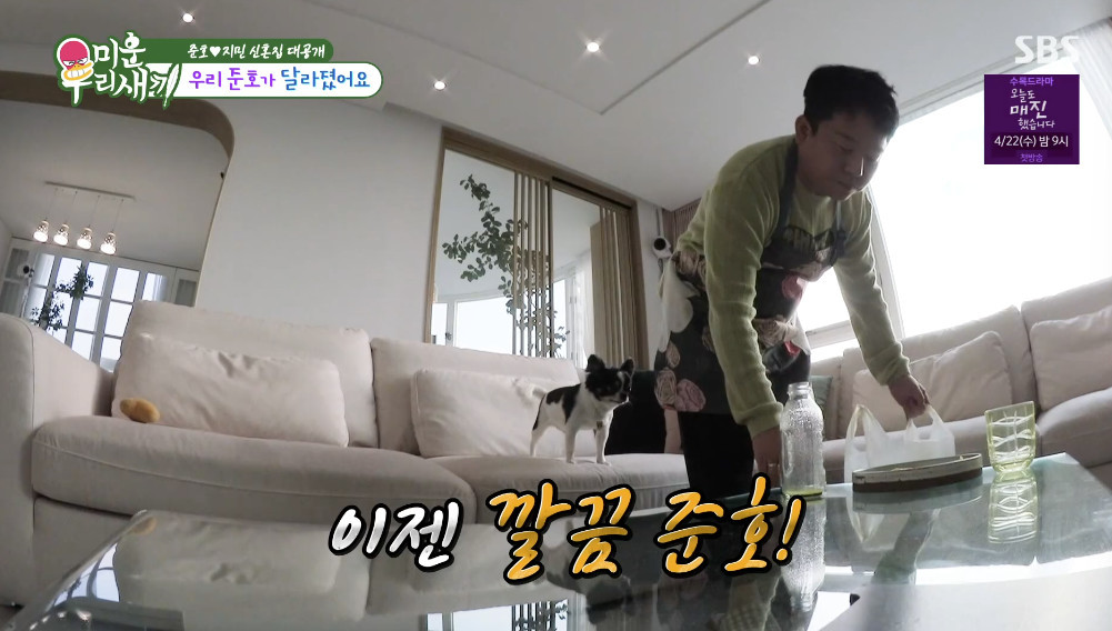 SBS'미운우리새끼'5일방송SBS'미운우리새끼'갈무리(서울=뉴스1)김민영기자=코미디언김준호와김지민부부의신혼일상이공개됐다.5일오후방송된SBS예능프로그램'미운우리새끼'에서는김준호과김지민의신혼집이선보여졌다.이날방송에서김준호는앞치마를하고청소기를돌리고,분리수거까지척척해내는모습을보였다.패널들은낯설다는반응을보였다.'깔끔쟁이'로소문난서장훈도"준호가많이달라졌다며"칭찬했다.이후코요태김종민과배우임원희가방문해"집이정말달라졌다"고말하자,김지민은김준호에게"재활용이랑설거지에도가텄다"며칭찬을아끼지않았다.한편,결혼후체중이11㎏증가한모습을보인김준호는"결혼하고살찌지않으면행복하지않은것"이라고말해웃음을줬다[email protected]©뉴스1.Allrightsreserved.무단전재및재배포,AI학습이용금지.