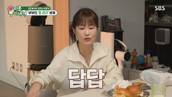 SBS‘미운우리새끼’SBS‘미운우리새끼’SBS‘미운우리새끼’[뉴스엔유경상기자]김지민이통장을합치자는김준호의제안을거부했다.4월5일방송된SBS‘미운우리새끼’에서는코미디언김준호김지민부부의신혼생활이공개됐다.김준호는김지민이외출한사이에청소와요리까지하며결혼후완전히달라진모습을보였다.김지민은귀가하며“왜냄새가좋냐”고놀랐고,김준호는“자기가매일요리해주니까오늘은내가했다”고말했다.오자마자뽀뽀를하는부부의모습에서장훈이“그래도지민이가뽀뽀를해주네”라고반응해웃음을안겼다.김준호는“왜이렇게예쁘게하고다니냐”며김지민을칭찬했고,김지민은“머리가왜그러냐.안씻었냐”며머리냄새를맡아보고“안감았지?약간쏠린다”고잔소리를했다.김준호가만든수제버거를먹으며김지민은“맛있다”고감탄했고“생활비가늦는다”며생활비이야기를꺼냈다.김준호가“좀더말미를달라”고부탁하자김지민은“내가사채업자야?”라고응수했다.김준호는“자동이체를해놨는데통장에돈이없는줄몰랐다”고변명했다.김지민이“회사에서들어오는월급통장에자동이체를걸면되잖아”라며황당해하자김준호는“지난달이자기에게사준다이아할부가끝나는달이었다”며결혼할때사준다이아반지12개월할부가이제야끝났다고고백했다.서장훈은“이해를해줘야한다.결혼과동시에굵직한방송2개가날아갔다”며김준호가출연하던‘돌싱포맨’폐지를언급했다.이어김준호가“파격제안을하겠다.다시합치는거”라며통장을합치자고제안하자김지민은“난너무잘모으고있는데왜똥물을튀려고하냐”며반대했다.김준호는“자기는너무둔다.지금대한민국에서주식으로돈못버는건자기밖에없다”며주식을제안했지만김지민은“오빠는-70%잖아.난마이너스된적이한번도없다”며저축을고수했다.뉴스엔유경상yooks@기사제보및보도자료[email protected]ⓒ뉴스엔.무단전재&재배포금지Copyright©뉴스엔.무단전재및재배포금지.