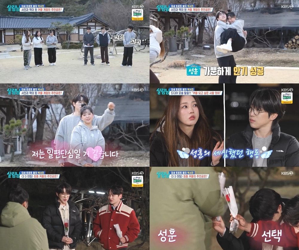 살림하는남자들시즌2방송캡처가수안성훈이안성훈이특유의다정함과배려깊은모습으로설렘을선사했다.지난4일방송된KBS2‘살림하는남자들시즌2’단체소개팅코너‘너도솔로’에출연한안성훈은“평소연애프로그램을많이보는애청자로서큰기대감을안고나왔다”며설레는마음으로현장을찾았다.안성훈은등장부터다정한매너로분위기를주도하며요요미와홍지윤,두여성출연자의선택을받아단숨에‘대세남’으로등극했다.이어미니게임에서요요미를파트너로선택하며교감을이어간안성훈은함께출연한박서진의귀여운질투를유발하며예능적재미까지확실히이끌어냈다.저녁식사후이어진진실게임에서는홍지윤이안성훈의섬세한배려에설렘을느꼈다고고백하며현장의열기를더했다.이들을둘러싼복잡한관계와서로에대한마음을확인하는질답은보는이들을더욱몰입하게만들며설렘가득한분위기를고조시켰다.최종선택에나선안성훈은“첫인상도친해지고싶은마음도똑같이한사람에게느꼈다.평소에는아이같은모습만봤다면오늘보니생각보다어른스럽고진중한모습을봤다”며요요미에게직진했고요요미의선택을받으며최종커플로맺어졌다.손봉석기자[email protected]©스포츠경향.무단전재및재배포금지.