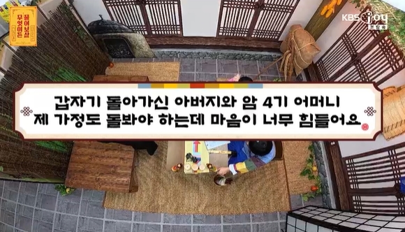 부친의극단적선택,이어지는모친의암진단…외동아들의눈물전세사기에보이스피싱까지…2억날린'재무회계총괄'의뢰인(MHN김소영기자)MC서장훈과이수근이고민상담자들에게진심어린조언을건넸다.6일방송된KBSJoy예능프로그램'무엇이든물어보살'에서는가슴아픈가족사와반복되는사기피해로고통받는의뢰인들의사연이공개되어시청자들의안타까움을자아냈다.첫번째사연의주인공은중고차매매상사를운영하는39세남성이었다.그는2년전,65세의나이에차안에서번개탄으로생을마감한아버지의비극적인소식을전하며운을뗐다.설상가상으로올해는어머니마저암4기판정을받으며절망적인상황에놓였다.의뢰인은"외동아들이다.책임져야할가정도있고11살딸도있는데,어떻게제마음을돌봐야할지모르겠다"며막막함을토로했다.특히어머니는19세때재혼으로인연을맺은새어머니였으며,친어머니는중학생시절가출후연락이두절된상태였다.현재어머니는연명치료를원치않으시는반면,의뢰인과새어머니측자녀들은조금이라도더치료를이어가고싶어하며갈등을빚고있었다.서장훈은"자식입장에서는치료를중단하지않고싶어하지만,부모님은정리할시간을원하시기도한다"며공감했다.사업체를운영하며늘웃어야만하는의뢰인에게이수근은"아빠의삶은다똑같다.싫어도참고웃으며사는것"이라며다독였다.점괘로'꽃가마'그림이나오자서장훈은"늘이생각을해.너한테만있는일이라생각하지마라"며일상을찾길응원했다.이수근은"너붙잡고30분만얘기하면너운다"라며토닥였다.이어등장한47세여성의뢰인은재무회계총괄업무를맡고있음에도불구하고,두번의사기로억대피해를입어충격을안겼다.그녀가잃은돈은소송비를포함해무려2억원에달했다.첫번째는'내집마련'을위해복층오피스텔을알아보던중발생한전세사기였다.부동산직원의친절함에속아지인4명까지소개해주었으나,결국사기로밝혀지며친구들에게고소위기까지몰렸던아찔한경험을털어놨다.두번째는보이스피싱이었다."주변에알리지말라"는범인의말을곧이곧대로믿어큰피해를입었다.서장훈이"뉴스를거의안보느냐"고묻자의뢰인은그렇다고답했다.이에서장훈은"보이스피싱은우리가7년전부터경고해온이야기"라며세상물정에너무무관심했음을따끔하게지적했다.다행히의뢰인은현재열심히일하며빚을성실히갚아나가고있었다.서장훈은의뢰인의경각심을일깨우기위해"복구방법을알려줄테니직장과번호등을적으라"고즉석테스트를했다.이에의뢰인이의심없이개인정보를술술적어내려가자,보살들은"방금사기당한이야기를하고도또이러면어떡하냐"며끝까지주의를당부했다.사진=KBSJoyCopyright©MHN.무단전재및재배포금지.