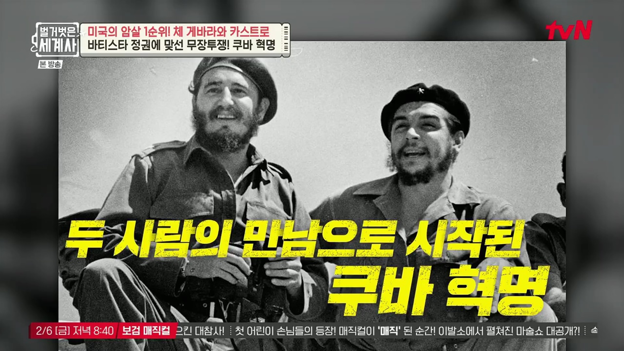[리뷰]tvN<벌거벗은세계사>[이준목기자]체게바라와피델카스트로는1950년대'쿠바사회주의혁명'을일으킨주역으로미국패권주의에정면으로맞선인물들이다.이들이'혁명가인가,독재자'인가를두고시각에따라평가가극과극으로갈리며,지금까지도세계사논쟁의중심에서있다.2월2일방송된tvN<벌거벗은세계사>에서는'미국의암살1순위,체게바라와카스트로'편이그려졌다.▲벌거벗은세계사체게바라카스트로ⓒTVN체게바라와카스트로는의외로둘다유복한환경에서고등교육을받으며성장한'금수저'출신들이라는공통점이있다.체게바라는1928년6월14일아르헨티나로사리오에서출생했고,한때는명문대의대에진학하며의학도를꿈꿨던모범생이었다.카스트로는1926년8월13일쿠바에서대규모설탕농장을운영하는대지주의아들로태어나법대를거쳐변호사가될만큼엘리트코스를밟았다.충분히부유하고안정된삶을살수있었던두엘리트는왜돌연혁명가의길을선택했을까.당시라틴아메리카는300여년간스페인의지배를받아오다가하나둘씩독립에성공했다.미국은1823년'먼로독트린'이라는외교정책을발표하여유럽열강들의아메리카개입과식민지확장을금지한다.경쟁자들을차단한미국은,자원이풍부한라틴아메리카의핵심인프라를장악하여막대한수익을올렸다.미국은라틴아메리카의정치에개입하여반미성향의정권을쿠데타와공작으로제거하고친미정권을수립하기도했다.사실상미국기업이남미경제를지배하는구도가되면서라틴아메리카는미국의경제식민지로전락했다.남미의많은노동자들은열악한노동환경과저임금속에서착취당하며비참한삶을살아야했다.1951년체게바라는9개월에걸쳐라틴아메리카전역을도는대장정을기획한다.20대청년이었던체게바라에게이여행을통해조국과라틴아메리카의비참한현실을깨닫고각성하는계기가된다.체게바라는세상을바꾸기위해서는혁명이필요하다는결심을하게된다.카스트로는변호사가되어주로노동자를변호하는사건을맡았지만,줄줄이패소를면하지못했다.당시쿠바는친미정권인풀헨시오바티스타정부가쿠데타로집권한이후,미국자본과마피아의침투로빈부격차가심화되고환락과부패,범죄가만연하는사회로전락했다.카스트로는권력을쥔자들이법을통제하는쿠바의부패한현실에실망하여,세상을바꾸기위하여정치로뛰어들기로결심했다.1955년카스트로는무장봉기를기획했다가실패한후망명한멕시코에서체게바라를처음으로만나의기투합한다.카스트로와체게바라는함께혁명군을조직하여1956년다시쿠바로잠입했다.1959년1월'쿠바혁명'이성공하며카스트로의혁명군이수도아바나에입성한다.바티스타는도미니카로망명했다.수십만명의시민들이거리로쏟아져나와서혁명군을환영했다.미국은초기에는쿠바혁명을민주혁명으로인정하고카스트로정권을쿠바의정당한새정부로승인하는등유화적인제스처를취했다.하지만얼마지나지않아미국과쿠바의관계는급속도로얼어붙게된다.카스트로정권은집권후공개적인혁명재판을열고바티스타정권에관여한관계자수백명을적법한절차나증거없이사형선고이후즉각처형하는정치보복을단행했다.또한카스트로정권은토지개혁을실시하여국유화된쿠바의미국소유부동산을압수하고자산을몰수했다.혁명정권출범1년만에쿠바땅의미국자산들은모두소멸했고,3년간25만명에이르는쿠바의엘리트와중산계층이미국으로망명한다.또한카스트로정권은미국에대항하기위하여소련과동맹을맺었다.2차대전이후세계는미국과소련이치열한패권경쟁을펼치고있던냉전시대였다.소련에게도미국의라틴아메리카패권을흔들고,미국의바로앞마당에서위협을가할수있는쿠바의존재는안성맞춤이었다.아이젠하워미국대통령은"카스트로와체게베라는통제불가능한숙적"으로지칭하며위험인물로규정하게된다.▲벌거벗은세계사체게바라ⓒTVNCIA는비밀프로젝트로'카스트로암살작전'을기획했다.기록에따르면CIA의카스트로는암살계획은638건에이르렀다고한다.카스트로는'세계에서가장많은암살시도를받은인물'로기네스북까지오르게되지만단한건도성공하지못했다.1961년4월16일카스트로는'사회주의선언'으로미국을충격에몰아넣었다.라틴아메리카대륙국가에서사회주의를공식선언한최초의사건이었다.경악한미국은카스트로정권을붕괴시키기위하여4월17일'피그스만침공'을기획한다.하지만쿠바군의진압으로상륙작전은수많은사상자를내며실패로끝났다.쿠바와소련은미국의재침공을막기위하여쿠바에소련의핵미사일을배치하는초강수를둔다.앞마당에핵미사일기지를두게된미국은강력한해상봉쇄를단행하며핵전쟁의위기감이고조된다.강경파인카스트로와체게베라는유사시핵전쟁도불사하겠다며소련에지원을요청했다.그러나소련은정말로미국과핵전쟁까지갈의사는없었기에쿠바몰래미국과협상을진행했다.합의결과소련은미국이쿠바를침공하지않는다는조건으로핵미사일을철수한다.체게바라는또다시두강대국사이에서이용당했다며실망감과분노를감추지못했다.1964년12월11일체게바라는쿠바대표로뉴욕에서열린유엔총회에참석한다.미국으로부터위험인물로규정되어암살위협에시달리는상황에서도,체게