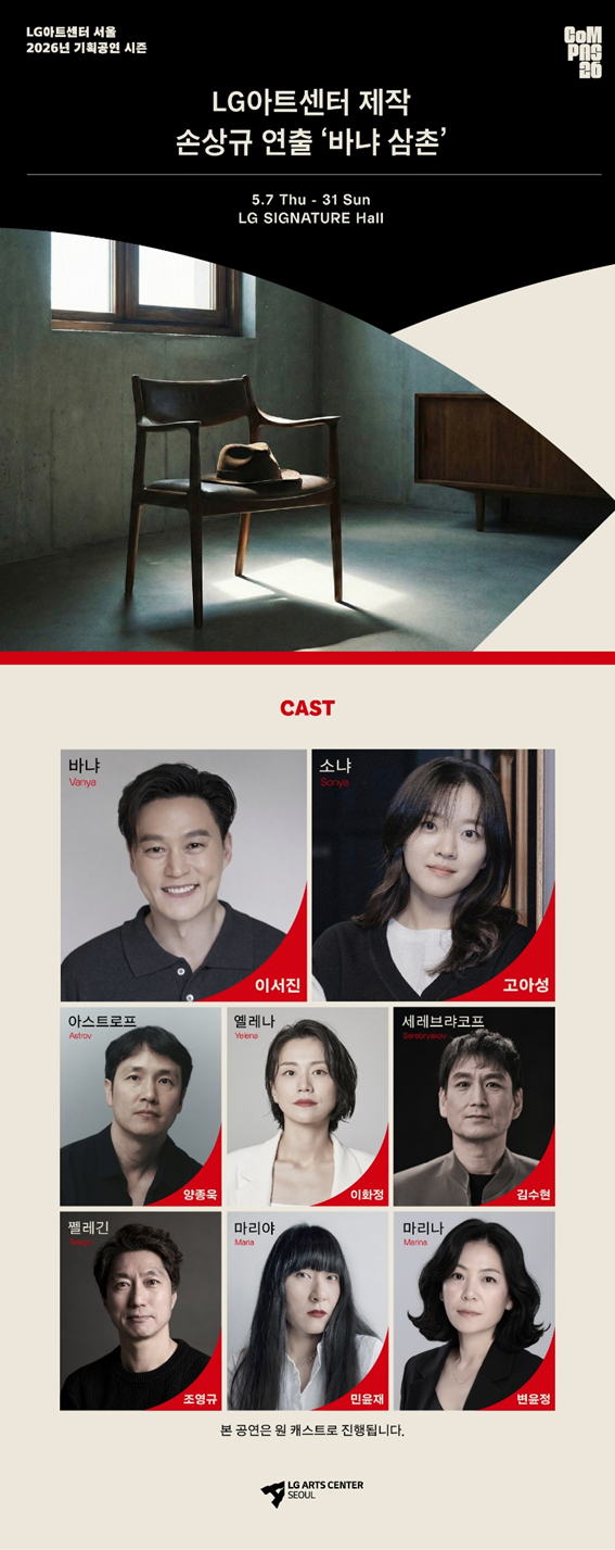 [스타뉴스|김나연기자]사진=LG아트센터배우이서진과고아성이데뷔첫연극무대에오른다.12일LG아트센터가'바냐삼촌'의캐스트를공개했다.이번작품에서는드라마와영화,예능을넘나들며오랫동안사랑받아온배우이서진이데뷔27년만에첫연극무대에오르며,영화'괴물','설국열차'등에이어넷플릭스공개를앞둔'파반느'까지폭넓은연기스펙트럼을쌓아온배우고아성도첫연극도전으로함께호흡을맞춘다.여기에연극계를대표하는실력파배우들이합류해,보다밀도높은새로운앙상블을선보일예정으로기대를모은다.'바냐삼촌'은연극'타인의삶'으로작품성과흥행성을모두인정받은손상규가연출을맡아,5월7일부터31일까지LG아트센터서울,LGSIGNATURE홀에서공연된다.이서진과고아성은각각주인공'바냐'와'소냐'를연기하며,두배우를비롯한전출연진은전회차(22회)원캐스트로무대에오른다.'바냐삼촌'은러시아의대문호안톤체호프의대표작이자,지금까지도전세계무대에서가장많이공연되고있는고전명작중하나다.평생을삶의터전과가족,그안의질서에헌신해온'바냐'와'소냐'를비롯해,어느순간일상의궤도를벗어나며삶전체가흔들리는평범한인물들의이야기를섬세하게그려낸다.이서진은삶에대한불만과회의를끊임없이내뱉으면서도가족에대한애정과꿈에대한순정을간직한주인공'바냐'를연기한다.강인하고진중한캐릭터부터,따뜻한인간미가돋보이는면모까지,배우이서진이가진반전매력은'바냐'라는인물과절묘하게맞닿아있다.이번무대는장르와캐릭터의경계를넘나들며과감한선택을이어온그가관객과가장가까운거리에서자신의연기세계를다시한번확장하는계기가될것으로기대를모은다.이서진과함께호흡을맞추는배우고아성은극중'바냐'와함께삶의터전을지키며다음세대를향해나아가는인물'소냐'역을맡는다.14세에영화'괴물'로데뷔와동시에각종신인상을석권하며일찌감치연기력을인정받은그는,이후'설국열차','삼진그룹영어토익반','항거:유관순이야기'등을통해시대와장르를넘나드는폭넓은연기스펙트럼을구축해왔다.스크린에서탄탄한연기내공을입증해온그가처음으로선택한연극무대라는점에서,무대위에서표현될고아성만의'소냐'에관심이쏠린다.여기에연극팬들의열렬한지지를받는양손프로젝트의멤버양종욱을비롯해,'리차드2세','햄릿'등에서압도적인무게감을보여준김수현,제61회동아연극상연기상에빛나는조영규가함께한다.또한'세일즈맨의죽음','김씨네편의점'등에서탄탄한연기를선보인이화정과동시대의다채로운무대에서관객들을만나온민윤재,변윤정까지합류했다.'바냐삼촌'은삶의보편적인고통과기쁨,아이러니를섬세하게엮어내며,그어떤영웅서사보다도깊은울림을전하는체호프드라마의정수를보여주는작품이다.이번작품의연출을맡은손상규역시화려한장치보다는이야기와배우본연의색을극대화하는연출스타일로,체호프작품이지닌인물과관계의밀도를자연스럽게살려낼예정이다.2024년연극'타인의삶'으로작품성과흥행성을동시에입증하며성공적인연출데뷔를알린그가이번대극장무대를통해자신의연출세계를어디까지확장해나갈지또한이번작품의관전포인트다.한편연극'바냐삼촌'은LG아트센터서울홈페이지및주요예매처를통해2월27일오후2시부터1차티켓판매를시작한다.김나연기자[email protected]©스타뉴스&starnewskorea.com,무단전재및재배포금지