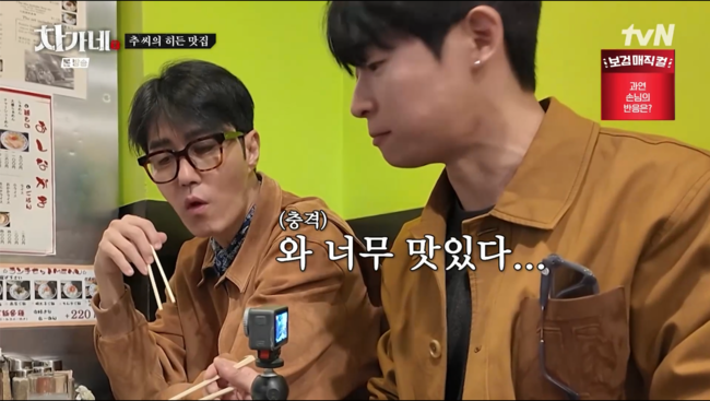 방송시청후작성된리뷰기사입니다.[OSEN=박근희기자]‘차가네’방송인추성훈이자신있게추천한라면맛집이차승원과대니구의입맛을완벽하게사로잡았다.12일전파를탄tvN‘차가네’에서는매운맛한탕을위해일본도쿄로출장을떠난차가네조직의이야기가이어졌다.멤버들은추성훈이평소즐겨찾는라면가게를방문했다.이들은대표메뉴인차슈라멘과물만두를주문하며기대감을드러냈다.먼저나온물만두를맛본대니구는맛에감동하는모습을보였고,차승원역시"만두피가너무쫄깃해”라며감탄을금치못했다.이어메인요리인라멘이등장하자차승원의찬사는계속됐다.그는“너무좋아너무”라며만족감을표했고,국물맛을본뒤에는“깊다깊어”라고평하며진한육수의풍미에매료된모습을보였다.대니구또한“정말맛있다”라며말도없이코를박고먹기시작해그맛을증명했다.멤버들의극찬이이어지자추성훈은뿌듯한표정으로“그래서여기는인기많아요.그래서제너튜브가잘되고있습니다”라며자신의맛집선별능력을은근히자랑했다.이에차승원은특유의능청스러운표정으로“그네너튜브를내가지분을갖는방법은없나?”라고물어추성훈을당황케했다.추성훈이“와또나왔다.지분을너튜브지분까지?”라며어이없어하자,차승원은한술더떠“변호사하고얘기를해볼게”라고응수해현장을웃음바다로만들었다./[email protected][사진]‘차가네’방송화면캡쳐Copyright©OSEN.무단전재및재배포금지.