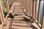 절벽구간낙석문제7년째해결못해400여m폐쇄중옥천군,내년까지28억원투입해낙석방지시설보강(옥천=연합뉴스)박병기기자=충북옥천의대청호둘레길인향수호숫길이낙석으로인해7년째반쪽운영되고있다.2020년탐방로에떨어진돌덩이[독자제공.재판매및DB금지]깎아지른바위절벽에서떨어져내리는돌덩이때문에중간지점400여m구간의출입이통제되고있어서다.옥천군은내년까지28억원을투입해낙석방지시설을보강한다는계획이지만,동강난둘레길이다시이어질지는미지수다.향수호숫길은2019년옥천읍수북리선사공원에서안내면장계리주막마을을잇는5.6㎞구간에개설됐다.개장뒤한해3만여명의탐방객이몰리면서이지역관광명소인'옥천9경'중8경으로자리매김할만큼인기가높았다.그러나절벽을통과하는구간이많다보니개장직후부터낙석으로인한안전문제가제기됐다.어른몸통만한돌덩어리가굴러떨어져탐방로를파손하는일이되풀이되자옥천군은2020년절벽구간(황룡암인근)400여m를폐쇄한뒤낙석방지공사에착수했다.바위절벽을망으로덧씌우거나펜스를치는공사가여러차례반복됐지만,전문기관(한국급경사지안전협회)안전기준을넘어서지못했다.옥천군은고민끝에절벽상단부까지낙석방지망을증설하기로결정,28억원의공사비를확보했다고14일밝혔다.군은올해상반기정밀조사와설계등을거쳐내년봄개통을목표로공사를진행한다는구상이다.그러나일각에서는절벽높이나지질등을고려할때낙석문제해결이쉽지않을것이라는전망도있다.옥천군관계자는"절벽상단부를보강하면낙석위험을줄일수있다는전문가진단이있었다"며"이번공사를마무리한뒤이용객안전을위한종합적인대책을강구하겠다"고말했다[email protected]