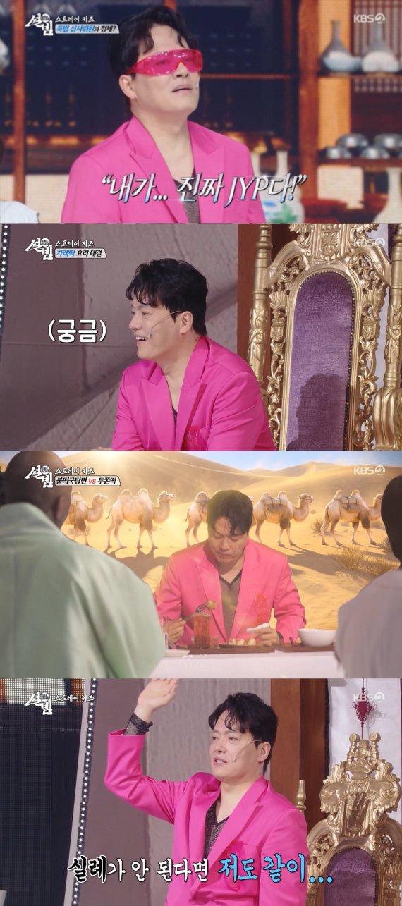 배우김형묵의특별한웃음선물이시청자들을만났다.김형묵은지난16일방송된KBS2설특집프로그램'설빔-SoulBeam(이하'설빔')'에출연해대체불가능한매력을과시했다.그는'설빔'의대미를장식한마지막코너'조선의셰프'에최고의미각을지닌심사위원'제와피'(J와P)로등장,스트레이키즈가만든가래떡요리를평가했다.김형묵은등장부터화려했다.그는박진영을연상케하는의상을갖춰입고'날떠나지마'에맞춰객석에서등장했고,능청스러운립싱크와유연한몸놀림으로스트레이키즈와관객들의마음을사로잡았다.여기에김형묵은박진영특유의표정을완벽하게모사해웃음을선사했다.본격적인요리대결이펼쳐지고,김형묵은주재료가래떡을공개했다.스트레이키즈멤버들은15분안에'불떡국탕면'과'두쫀떡추로스'를만들었다.김형묵은두팀의요리를진지하게맛본뒤,박진영의'어머님이누구니'와'그녀는예뻤다'의가사를활용한센스넘치는심사평을남기며'예능신스틸러'의위엄을뽐냈다.김형묵의존재감은마지막까지강렬했다.모든미션을마친스트레이키즈전원이조선시대에서2026년으로돌아가게되자,김형묵은조심스럽게손을들며"저도실례가안된다면함께가고싶다"라고말했다.그는"2026년에서드라마를촬영중"이라며매주토,일요일방송되는KBS2주말드라마'사랑을처방해드립니다'홍보도잊지않으며끝까지'신스틸러'의이름값을톡톡히했다.한편,김형묵은매주토,일KBS2'사랑을처방해드립니다'와tvN'언더커버미쓰홍'으로시청자들과만나고있다[email protected]한아진기자사진=KBS2'설빔-SoulBeam'Copyright©파이낸셜뉴스.무단전재및재배포금지.
