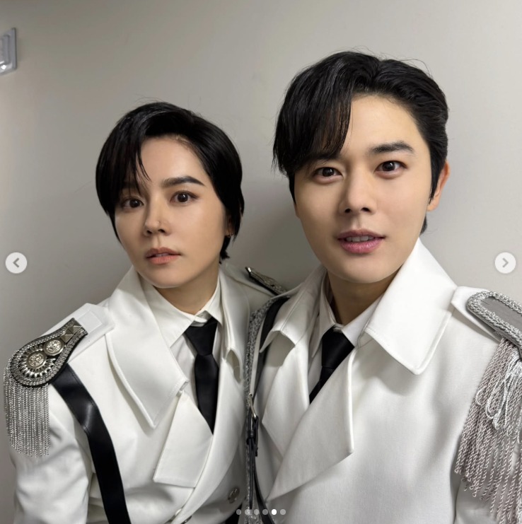 한가인인스타그램김동준인스타그램(서울=뉴스1)김민지기자=배우한가인과김동준이또한번닮은꼴임을인증했다.19일한가인은자신의사회관계망서비스(SNS)에"김동준도플갱어,'은밀하게위대하게'"라는글과함께사진을게재했다.앞서한가인은19일공개된유튜브영상에서남장메이크업콘텐츠를공개한바있다.사진속에는김동준이뮤지컬'은밀하게위대하게'에서연기하는캐릭터로분장한한가인과실제김동준의모습이담겼다.평소에도닮은외모로유명한두사람은이번에도싱크로율99%의비주얼을자랑해눈길을끌었다.이에김동준역시댓글로"누나1막만대신해주면안돼요?뒤에서노래는제가할게요"라며한가인과자신의몰라보게닮았음을인정했다.이후김동준역시한가인과함께찍은사진을올린뒤"누나'은밀하게위대하게'뮤지컬보고옴,누나액션을아주잘하시더라고요,여러분께도강추합니다"라며"유튜브보러오세요"라고능청스럽게댓글을남겨웃음을자아냈다.한편한가인은유튜브채널'자유부인한가인'에출연중이며,김동준은뮤지컬'은밀하게위대하게'로관객들과만나고있다[email protected]©뉴스1.Allrightsreserved.무단전재및재배포,AI학습이용금지.
