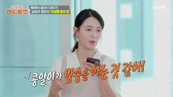 [스타뉴스|김정주기자]/사진=KBS2TV예능프로그램'신상출시편스토랑'배우남보라가6월출산을앞두고팔불출면모를보였다.20일방송된KBS2TV예능프로그램'신상출시편스토랑'에는친정엄마와함께산부인과를방문한예비엄마남보라의모습이그려졌다.이날남보라는산부인과를찾아기형아검사와목투명대검사를받았다.고위험산모로분류돼잔뜩긴장했던남보라는검사결과모두정상이라는진단을받고안도한뒤집으로돌아왔다.이때남편에게전화가왔고,남보라는검사결과를전하며"손발이쭉쭉이다.콩알이모델될수도있다.팔다리가진짜길다"라고자랑했다./사진=KBS2TV예능프로그램'신상출시편스토랑'이어"콩알이가방송을아는것같다.초음파검사하는데앞으로돌았다가뒤로돌았다가뱃속에서백텀블링을하더라"라고들든표정을지었다.이를듣던남편이"방송을안다"라고맞장구치자남보라는"아이돌될건가봐"라고대꾸해웃음을안겼다.VCR을보던남보라는"저도이렇게팔불출이될줄몰랐는데제자식이조금만뭘해도기분이되게좋더라"라며웃음을터뜨렸다.한편남보라는지난해5월동갑내기사업가와결혼해오는6월출산을앞두고있다.김정주기자[email protected]©스타뉴스&starnewskorea.com,무단전재및재배포금지