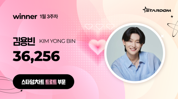 ▲김용빈이1월셋째주'스타덤차트'트로트부문주간랭킹에서1위를차지한투표결과이미지.제공|스타덤[스포티비뉴스=김원겸기자]가수김용빈이'스타덤차트'트로트부문에서8주연속정상을차지했다.김용빈은26년1월3주차(집계기간26년1월19일~26년1월25일)'스타덤차트'트로트부문주간랭킹에서1위를차지했다.김용빈은15주연속1위를지키다지난해11월4주차에서강문경에게정상의자리를내줬지만,일주일만에곧바로1위자리에복귀한후8주연속정상을지켰다.김용빈은집계기간동안3만6256표를얻어1위를차지했다.강문경은1만8704표로2위를차지했다.3위는3120표를얻은김준수다.한편김용빈은26년1월3주차'스타덤차트'음원부문에서도'어제도너였고오늘도너여서'로1위를기록하면서18주연속정상을지켰다.배우부문주간랭킹에서는김수현이15주연속1위에올랐다.아이돌부문에서는피프티피프티가1주일만에다시1위를차지했다.다양한부문의랭킹을보여주는'스타덤'은스타와팬들을연결해주는모바일애플리케이션으로,'나의최애셀럽을우주대스타로만든다'는캐치프레이즈아래스타와팬들을다양한방식으로연결한다.<저작권자ⓒSPOTVNEWS.무단전재및재배포금지>Copyright©스포티비뉴스.무단전재및재배포금지.