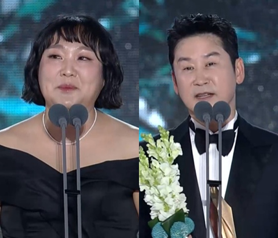 [스타뉴스|한해선기자]/사진=JTBC'제61회백상예술대상'중계방송캡처방송인이수지와신동엽이'제61회백상예술대상'예능상을수상했다.5일오후서울강남구코엑스D홀에서'제60회백상예술대상'이개최됐다.지난해에이어올해시상식도신동엽과수지,박보검이MC를맡았다.이날방송부문예능상은이수지,신동엽이수상했다.이수지는"김원훈씨가저에게어제꿈을꿨는데제가똥을뒤집어썼다고하더라.그런데제가크리스천이다.저오늘예쁘죠"라며너스레를떨었다.그는"저는웃길때가가장예쁘다고생각한다.제가슬럼프를겪고무대가없어졌을때웃음을어디서드릴수있을까고민했는데'SNL코리아'가손을내밀어주셨다.(신)동엽선배님사랑한다"라며"그리고(유튜브채널)'핫이슈지'봐주셔서감사하다.저보다감이좋은남편이저를좋은사람이되도록이끌어줘서감사하다.개그유전자를물려주신어머니가보고계실거라생각하니뿌듯하다"고털어놨다./사진=JTBC'제61회백상예술대상'중계방송캡처/사진=JTBC'제61회백상예술대상'중계방송캡처이어"욕을먹을때도있지만'오늘하루웃었어요'라고메시지를주시는분들이계셔서웃길수있는힘이생기는것같다.괜찮은세상을만들기위해웃음을만드는선후배님들을위해이상을바치고싶다"라고소감을밝혔다.신동엽은"백상MC를오래했기때문에배려해줬구나싶었다.(김)원훈이가받지않을까싶었다.맛있는식당을추천했는데맛있게먹어줄때행복하지않냐.방송에서도일상얘기를했는데주변인들이웃어주면그것만한행복이없는것같다.그동안30년넘게어느곳을향해항해했는지모르겠지만많은후배들이갈팡질팡할때그때순풍같은역할을하는선배가되겠다"라고말했다.'백상예술대상'은한국대중문화예술의발전과예술인의사기진작을위해제정한시상식으로,방송,영화,연극을모두아우르는시상식이다.1965년첫회를시작으로올해61주년을맞이했다.한해선기자[email protected]©스타뉴스&starnewskorea.com,무단전재및재배포금지
