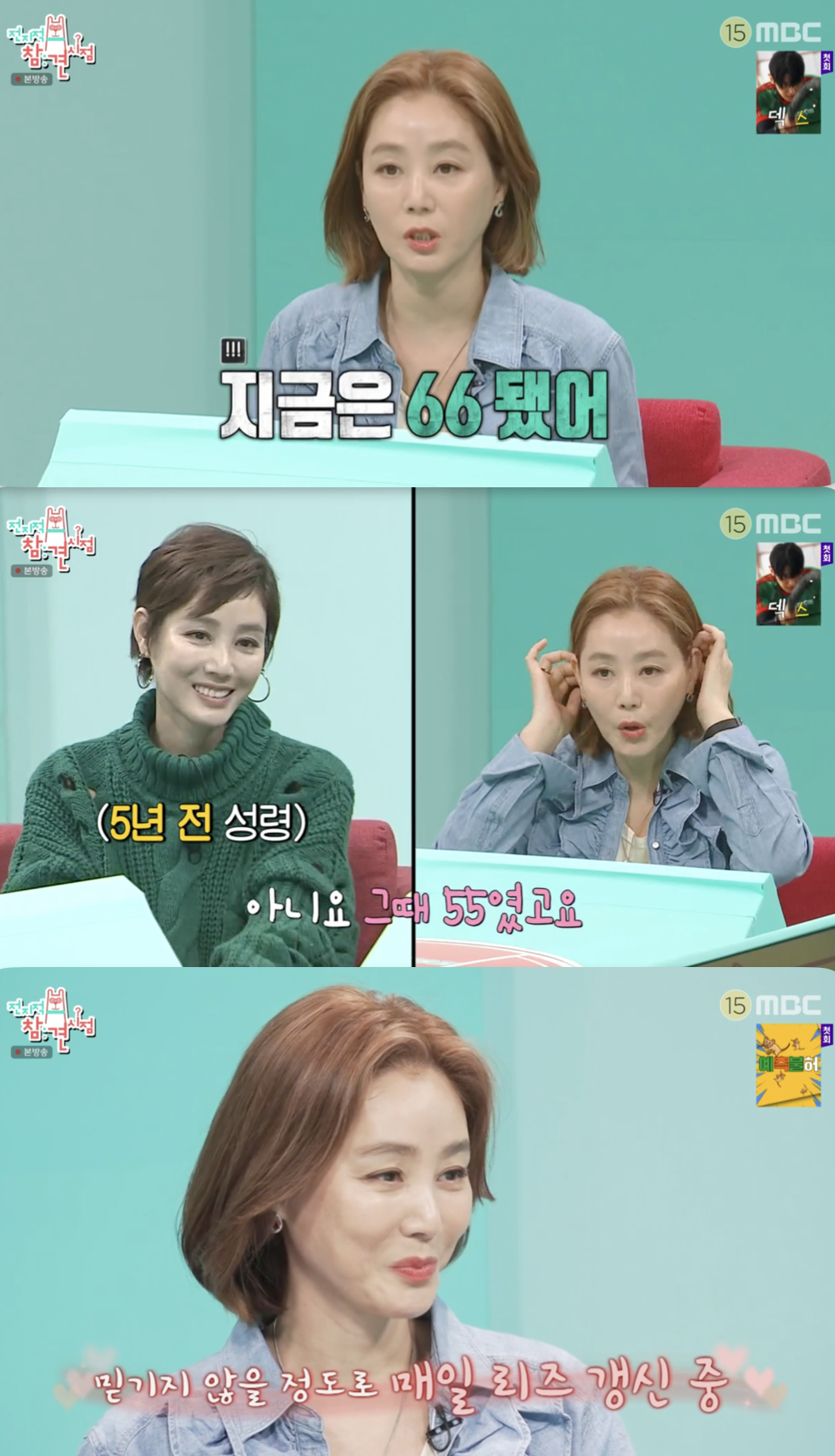 MBC‘전지적참견시점’캡처MBC‘전지적참견시점’캡처[뉴스엔서유나기자]배우김성령이신체사이즈가늘어난사실을고백했다.5월3일방송된MBC예능'전지적참견시점'(이하'전참시')345회에서는배우김석훈,김성령이게스트로출연했다.이날김성령은동안외모로오프닝부터주목받았다.1967년생으로김성령과동갑인이영자는"사이즈물어봐도되냐.5년전에55였지않냐"고물었다.다른출연자가"44아니었냐"고하자김성령은"아니다.그때55였다.지금은66이됐다"고말했다.다들아닌것같다고의심하자김성령은"진짜로"라고말했고출연자들은"매일리즈갱신"이라고칭찬했다.한편1967년2월생으로만58세인김성령은1988년미스코리아진에당선되며데뷔했다.김성령은지난해12월채널'A급장영란'에출연해장영란이4년전과비교해하나도달라진점이없다고하자"그때보다5㎏가쪘다"고고백한바있다.뉴스엔서유나stranger77@기사제보및보도자료[email protected]ⓒ뉴스엔.무단전재&재배포금지Copyright©뉴스엔.무단전재및재배포금지.