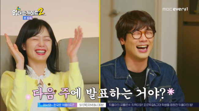 [OSEN=박근희기자]'위대한가이드2’박명수가전소민과최다니엘의사이를의심했다.29일전파를탄MBC에브리원예능프로그램‘위대한가이드2’에서는박명수X김대호X최다니엘대.다.수3인방이아프리카르완다여행마지막날이공개됐다.통나무로테이블을만들어달라는김대호의부탁에박명수는“니네둘이해라.나내려갈게”라고투정을부리기도.박명수는“이걸나혼자어떻게옮겨”라며무거운통나무에경악했다.다니엘은초집중을하고불을피우는데전념을했다.스튜디오에서이를본전소민은“다니엘듬직하다”라고말했고,박명수는“왜자꾸다니엘칭찬해?”라고장난스럽게물었다.박명수는“둘이약속한게있어?미래에대한약속이야?”라고덧붙여좌중을폭소케했다.박명수는“다음주에발표하는거야?알고나웃게”라고말해웃음을안겼다.극구부인하는전소민은“평소에이런모습이아니니까.이렇게빠릿빠릿하고야무진모습이아니다”라고설명했고,박명수는“평소에도만났다는얘기잖아”라며지지않고받아쳤다.두사람은“6개월(작품에서)”라고운을뗐고,박명수는“6개월만났다고?”라며두사람을몰아갔다./[email protected][사진]‘위대한가이드2'방송화면캡쳐Copyright©OSEN.무단전재및재배포금지.