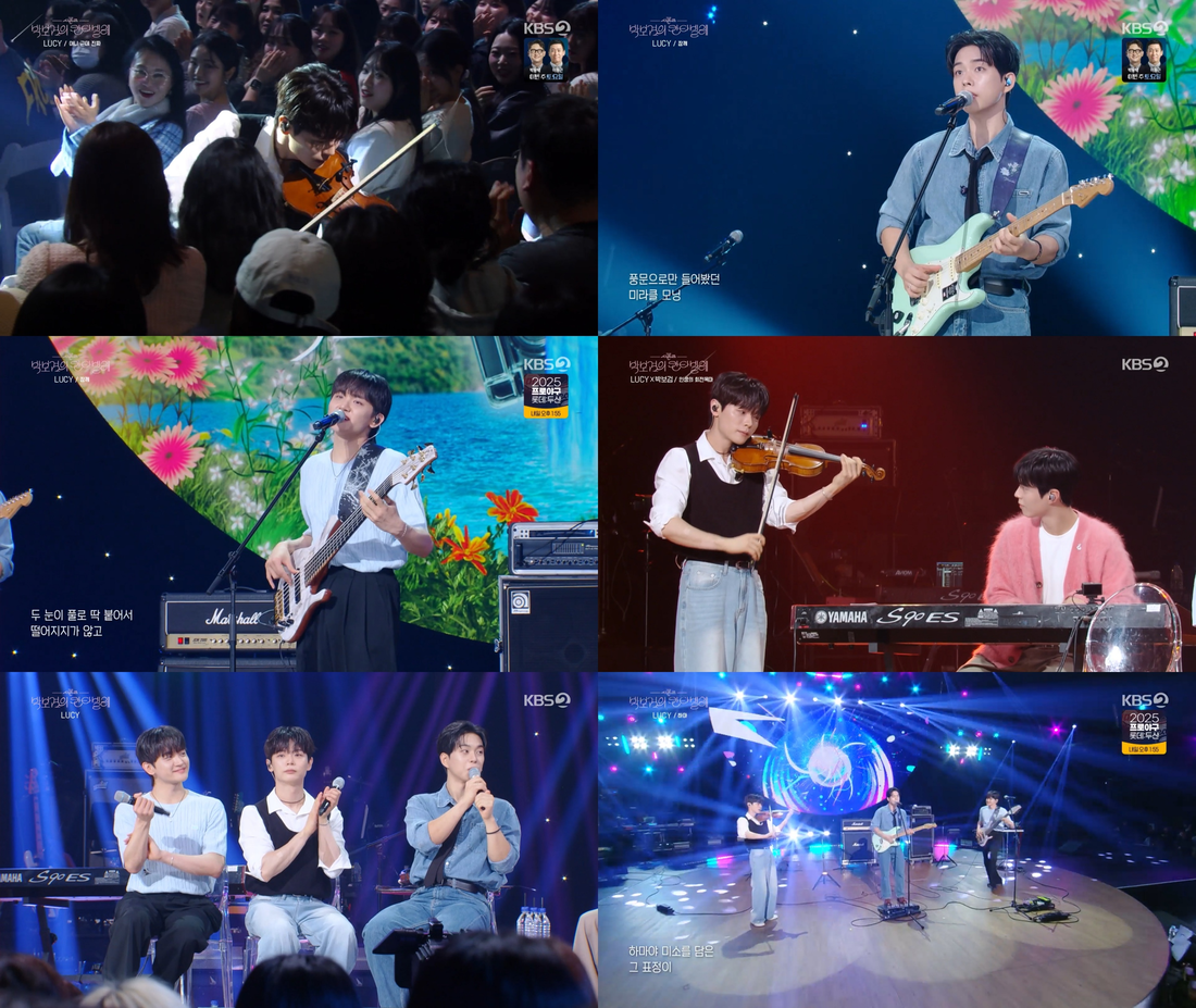 KBS2‘더시즌즈-박보검의칸타빌레’방송화면갈무리‘대중픽밴드’루시(LUCY)가설렘과낭만이가득한음악여행에관객들을초대했다.루시는지난25일방송된KBS2‘더시즌즈-박보검의칸타빌레’에서‘대세밴드’의면모를자랑했다.‘청춘기록’이라는주제로꾸며진이날방송에서루시는블루컬러의데님소재의상을입고등장,밈을활용한가사가위트넘치는‘아니근데진짜’로기분좋은오프닝을열었다.사랑하는사람을향한귀여운고백을담은가사와함께관객석에내려가서바이올린솔로파트를소화하는등루시만의자유분방한에너지가돋보였다.무대를본MC박보검은“청춘과정말잘어울린다.루시의무대를보는데음표들이날아다니는것같았다”라고극찬했다.‘완판밴드’로서루시는지금까지진행한국내단독콘서트를모두매진시켜왔다.이어진토크에서루시공연만의매력에대해멤버들은“저희콘서트지만정말재미있다.무대를뛰어다니며관객들과소통하는밴드는드물지않나.기존곡들도모두새로운곡처럼편곡해들려드리고있기때문에희소성이있는것같다”고말했다.그런가하면,멤버신예찬은박보검과함께애니메이션영화‘하울의움직이는성’의OST‘인생의회전목마’를합주해깊은여운을남겼다.이에루시는박보검을향해“선배님,혹시밴드하실생각없나요?”라며영입의사를밝혀웃음을안겼다.루시는지난23일발매한미니6집‘와장창’의더블타이틀곡‘잠깨’와‘하마’무대를음악프로그램에서최초로선보이며관객들의뜨거운호응을얻었다.‘잠깨’로는경쾌하면서도캐치한멜로디와노랫말로봄의설렘을,‘하마’로는신예찬의바이올린솔로를비롯해곡전반에재치넘치는FX사운드를더해유쾌한반전의재미를선사했다.또한,무대가끝난직후루시는음악스트리밍사이트‘멜론’의인기검색어1위에오르며,한번들으면잊히지않는중독적인밴드사운드로‘루시표청춘기록’을완성했다.한편,루시는오는5월2~4일서울성북구고려대학교화정체육관에서일곱번째단독콘서트‘와장창’을개최한다.루시는3회차공연을빠른시간내전석매진시키며,‘대중픽밴드’다운화력을입증했다.안병길기자[email protected]©스포츠경향.무단전재및재배포금지.