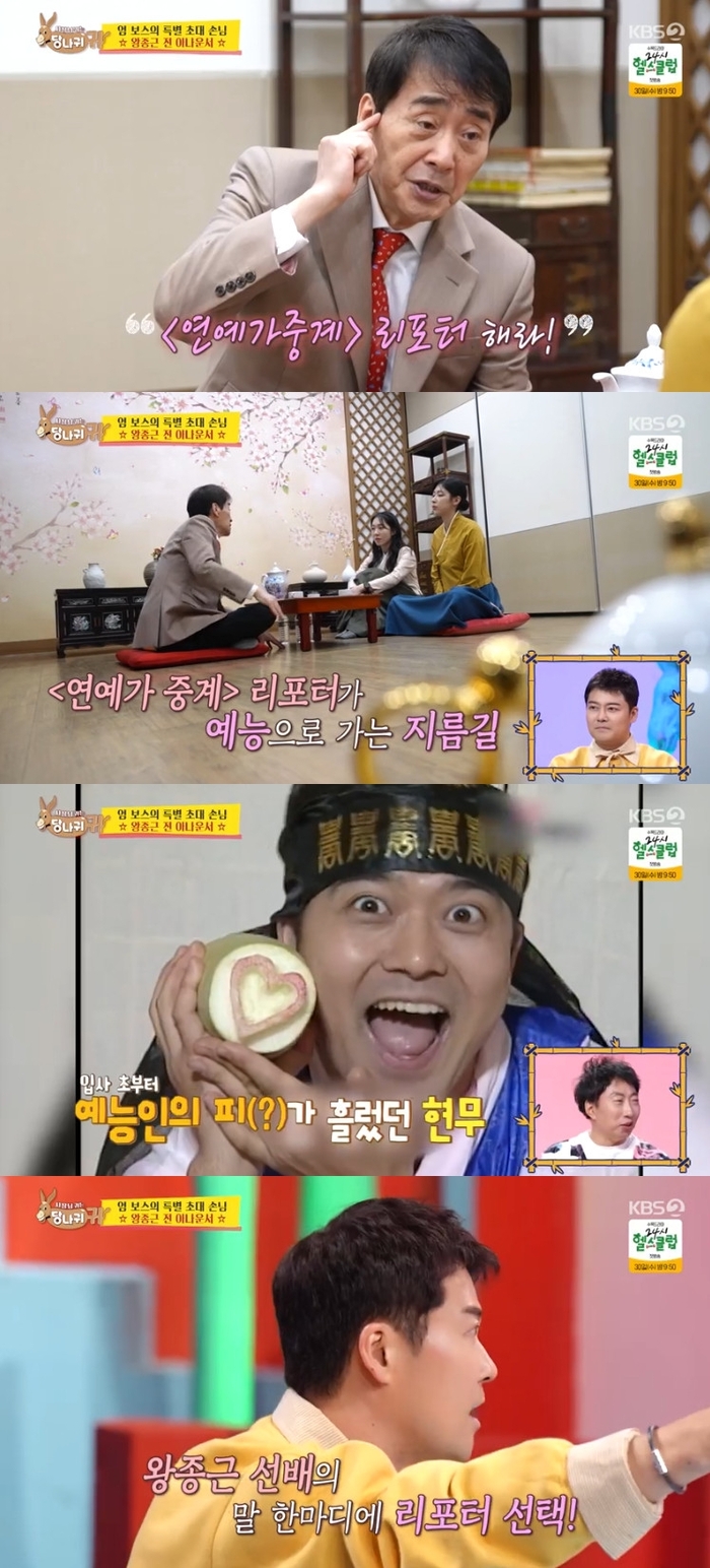 ‘사당귀’.사진lKBS왕종근아나운서가전현무의예능끼를진작부터알아봤다고전했다.20일오후방송된KBS2예능프로그램‘사장님귀는당나귀귀’(이하‘사당귀’)에는입사초기전현무에대해말하는왕종근아나운서가모습을보였다.이날방송에서왕종근은“현무가나보다더튀는거야.서울본사에서재회했지.내가딱하나말해준게있어.‘현무야연예가중계리포터시작해라’이렇게말했어.그게네가예능으로가는지름길이다.리포터를발판삼아예능으로가라”고해모두를놀라게했다.전현무는“교양프로메인MC가몇개들어왔는데다교양프로추천했는데왕종근선배님만‘연예가중계’하라고말한거야.그래서그말만듣고리포터했지.그때‘도전골든벨’이들어왔는데마다하니까아나운서실에서난리났었지”라며감사인사를전했다.‘사당귀’는매주일요일오후4시45분KBS2에서만날수있다.[서예지스타투데이객원기자]Copyright©스타투데이.무단전재,재배포및AI학습이용금지