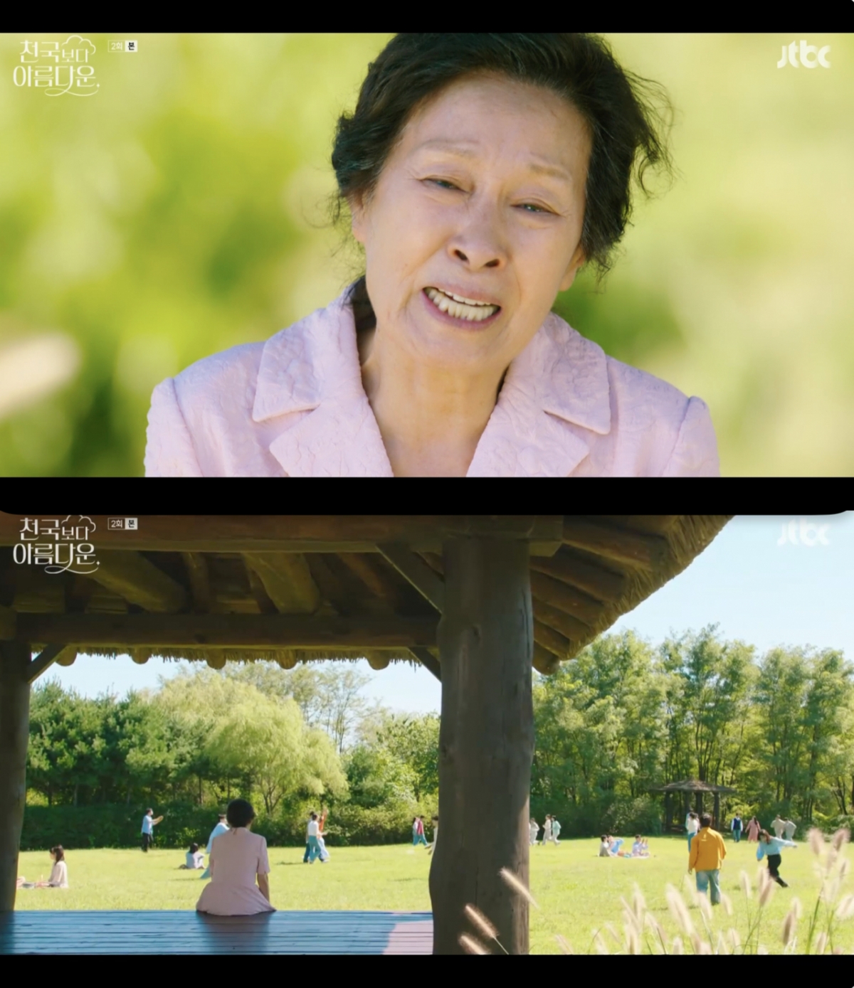 천국보다아름다운/사진=JTBC캡처[스포츠투데이정예원기자]'천국보다아름다운'김혜자가불안함속에서천국생활을시작했다.20일방송된JTBC토일드라마'천국보다아름다운'(이하'천아')에서는사망후천국에오게된이해숙(김해자)이먼저온남편고낙준(손석구)과천국에적응하는모습이그려졌다.먼저이해숙은고낙준과함께천국이곳저곳을돌아다니기시작했다.그는젊은시절로돌아간남편과낯선환경에적응하면서도,자신이천국에올자격이되는지의구심이들었다.천국보다아름다운/사진=JTBC캡처두사람은천국오리엔테이션을듣기위해강당으로향했다.이곳의'고위공무원'인센터장(천호진)은천국에온이들의적응을돕고자여러안내사항을전달했다.잠시후돌발상황을공유받은그는"제발한번죽었다고또죽으려하지말라.뛰어내리지좀말라"며사람들을타일렀다.이내이해숙과고낙준은밥을먹기위해식당에들어섰다.식당은먹고싶은메뉴를떠올린뒤마음으로결제를하면음식이차려지는시스템으로운영됐다.이해숙은자신도결제가될까걱정하면서도,남편과의첫데이트때먹었던돈가스가만들어지자크게기뻐했다.[스포츠투데이정예원기자[email protected]]Copyright©스포츠투데이.무단전재및재배포금지.