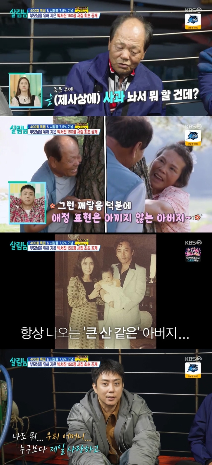 ‘살림남’.사진lKBS박서진아버지가은지원에게조언했다.19일오후방송된KBS2‘살림하는남자들시즌2’(이하‘살림남’)에는박서진아버지와속깊은대화를나누는은지원,지상렬이모습을보였다.이날방송에서서진아버지는먼저세상을떠난두아들을떠올리며“살아계신분께잘하면돼.죽은후에제사상에사과놔서뭐할건데?살아생전에사과하나사줘야지.애정표현안하면뭘하는지모른다고”라며무뚝뚝한은지원에게충고했다.은지원은“우리아버지도경상도분인데살아계셨을때되게가부장적이셔서우리랑겸상도안했어”라며돌아가신아버지를떠올렸다.이후은지원은카메라를보며“저도뭐...누구보다어머니를사랑하고...항상건강했으면합니다”라고용기내영상편지를전했다.‘살림남’은매주토요일오후9시15분에방송한다.[서예지스타투데이객원기자]Copyright©스타투데이.무단전재,재배포및AI학습이용금지