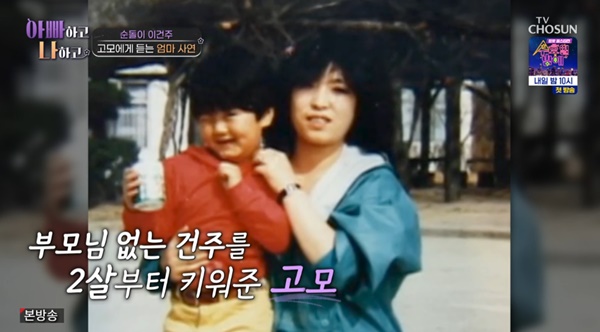 아빠하고나하고시즌2/사진=TVCHOSUN캡처[스포츠투데이정예원기자]'아빠하고나하고2'이건주가부모대신자신을키워준고모를소개하며눈시울을붉혔다.15일방송된TVCHOSUN예능'아빠하고나하고'시즌2에는배우출신무속인이건주가출연해고모에대한애틋한감정을드러냈다.이날이건주는오랜만에고모를찾아가함께시간을보냈다.그는고모에대해"어릴적부터날키워주셨다.부모님같은존재"라고설명했다.아빠하고나하고시즌2/사진=TVCHOSUN캡처이어"친구같다.너무나도편안하다"며"어릴때는부모님없이자라는걸로욕먹을까봐날엄하게키우셨다.성인이된후에는친구처럼,누나처럼잘해주셨다"고말했다.그러면서"고모와할머니가없었다면이렇게까지잘자랄수있었을까생각도든다.내겐목숨같은존재"라고마음을표현했다.이건주의고모역시"아들같은존재다.이렇게예쁜애가없었으면어떻게살았을까싶다"며"하늘이맺어준인연같다"고남다른애정을과시했다.이를스튜디오에서보던이건주는"부모의연은아니어도그때부터(하늘이)이어준듯하다"며눈물을보였다.[스포츠투데이정예원기자[email protected]]Copyright©스포츠투데이.무단전재및재배포금지.