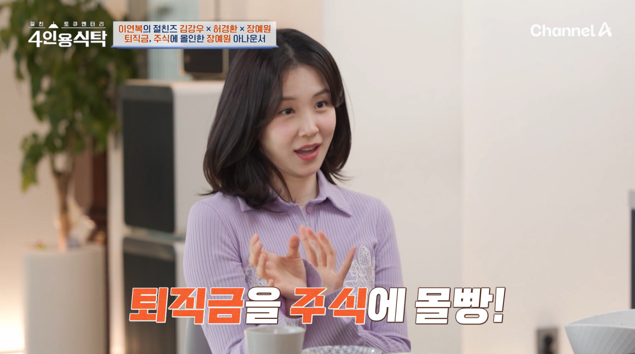장예원이퇴직금을주식에투자했다고밝혔다.iMBC연예뉴스사진iMBC연예뉴스사진iMBC연예뉴스사진iMBC연예뉴스사진7일방송된채널A'절친토큐멘터리4인용식탁'에서는셰프이연복이김강우,허경환,장예원을초대했다.이날장예원은"정리하고청소하는걸좋아한다.미니멀리스트로사는걸추구한다"고하며"최근중고거래에빠졌는데나한테필요없는게남한텐유용할수있지않냐.너무좋다"고말했다.허경환이중고거래수입으로재테크를하는지묻자장예원은"재테크로다잃어서중고거래를하는건가?주식으로잃었는데떨어진주식을아직놔뒀다"고밝혔다.장예원은"퇴직금을가지고있는건의미가없는것같아주식한종목에투자했다.그걸로힘든상황을겪었다"고하며"평생가는거라고생각한다.언젠가이별할날을기다린다"고덧붙였다.한편채널A'절친토큐멘터리4인용식탁'은매주월요일오후8시10분방송된다.iMBC연예백아영|사진출처채널ACopyright©MBC연예.무단전재및재배포,AI학습금지.