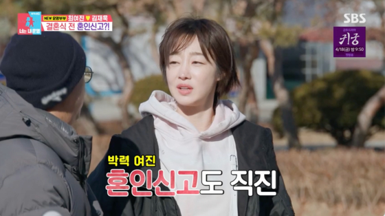 [스타뉴스|김노을기자]/사진=SBS방송화면배우최여진이예비남편김재욱과의결혼생활을고대했다.7일방송된SBS예능프로그램'동상이몽2-너는내운명'에는오는6월결혼하는최여진과그의예비남편김재욱이출연했다.최여진은지난해8월SBS'신발벗고돌싱포맨'에출연해"7세연상인돌싱(돌아온싱글)남자친구가있다"고열애사실을밝혔다.이후최여진의남자친구가2020년7월tvN예능프로그램'온앤오프'최여진편에함께출연한사실이알려져화제를모았다.당시그는수상스키감독으로등장했으며이혼전이었기때문./사진=SBS방송화면이날최여진은김재욱을데리고가평주민센터를찾았다.그는"서류에도장찍고마음편하게지내고싶다"고혼인신고를하려는것.한차례이혼경험이있는김재욱은"돌이킬수없는강이다.마지막기회"라며망설였다.이에최여진은"나랑결혼하기싫어서그런거냐뭐냐.지금'한번실수하지두번실수하나'하고불안한거냐.나만믿고따라와라"고박력있게김재욱을리드했다.티격태격하던두사람은결국혼인신고서한장을챙겨서둘러귀가했다.차안에서최여진은"뭔가가시작되는것같아서좋다"고결혼생활에대한설렘을드러냈다./사진=SBS방송화면하지만김재욱은"진짜잘생각해야한다.나는미안해서그렇다"고연신미안함을드러냈다.그러자최여진은"'미안해'라는말보다'사랑해','고마워'라고하면된다.더이상미안하다는말을안들었으면좋겠다"고당부했다.최여진은또"한번하면돌진하는스타일이다.그래서날짜도잡았다.오는6월1일"이라고결혼식날짜를공식적으로밝혔다.이후최여진은김재욱이요리를하느라정신없는틈을타혼자서혼인신고서를작성해웃음을자아냈다.김노을기자[email protected]©스타뉴스&starnewskorea.com,무단전재및재배포금지