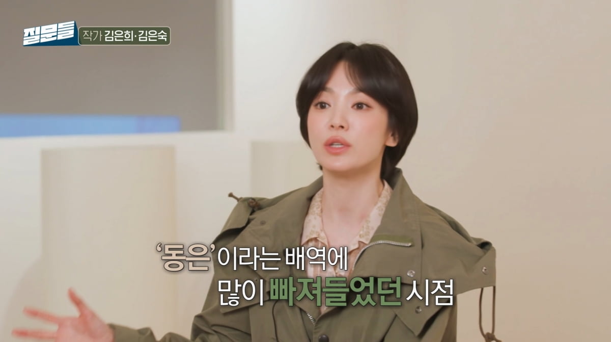 [텐아시아=김은정기자]사진=MBC'손석희의질문들''질문들'김은숙이'더글로리'송혜교연기를극찬했다.1일방송된MBC'손석희의질문들'에는김은숙,김은희작가가출연했다.이날김은숙작가는"누구랑친하냐,어떤작품이가장좋냐,어떤배우랑가장많이연락하냐는질문에는일절대답하지않는다.대답하면다른작품이소외당하기때문"이라고밝혔다.그러면서"나는김은희랑친하다"며너스레를떨었다.'작가생각보다잘나온장면'으로드라마'도깨비'의공유,이동욱워킹신을꼽은김은숙은"공유,이동욱이김고은구하러가는장면인데,말이필요없다.조명까지절묘했다.비명지르며봤다.이장면이이렇게까지나오는구나싶더라.너무놀랐다"고말했다.사진=MBC'손석희의질문들'사진=MBC'손석희의질문들'사진=MBC'손석희의질문들'이어김은숙은'더글로리'문동은의"멋지다연진아"외치는장면을언급하며"소름끼치게좋았던장면이다.이렇게톤을높여도괴기스러울수있구나생각이들었다.배우송혜교에게너무좋았다고극찬했다"고전했다.'더글로리'에서문동은역을했던송혜교는직접등장해당시현장에대해이야기했다.그는"해당장면이촬영중반부였다.이미나는문동은배역에많이빠져들었던상태"라며"현장에서느낀분위기로연기를했다"고밝혔다."그순간문동은이됐다"는송혜교는"계산적하지않고대본과현장에서느낀대로연기했다.촬영후김은숙작가에게전화가왔다.마음에안드시는부분이있나걱정했는데,전화를받자마자'그장면너무좋았다'고하더라.너무행복했다"고회상했다.사진=MBC'손석희의질문들'사진=MBC'손석희의질문들'사진=MBC'손석희의질문들'박연진역을맡았던임지연은"멋지다연진아"대사에대해"작품의하이라이트장면이라고생각한다.내가그렇게악독하게괴롭혔던문동은이한다는말이'멋지다연진아'였다.극적인상황을위트있는대사로표현한것에서김은숙작가의인물깊이연구가느껴졌다"고이야기했다.임지연은"김은숙작가의작품에는많은사랑이담겨있다.사랑이있어서원망미움이있는거"라며"작가님은사랑이라는감정을중요하게생각하는것같다.다른장르물에도농도있는사랑이야기가있을것같다.계속새로울것"이라며기대감을내비쳤다.김은정텐아시아기자[email protected]©텐아시아.무단전재및재배포금지.