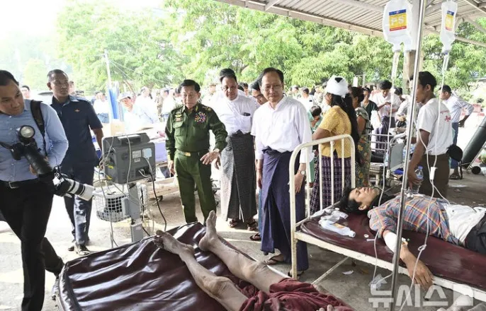 인명피해더욱늘어날것은불보듯명확…NYT"1만명넘을수도"규모7.5강력한여진포함모두12차례여진발생장비부족및열악한도로사정등으로구조작업지지부진중국러시아인도구조대,29일미얀마도착[네피도=AP/뉴시스]미얀마군부가제공한사진에민아웅흘라잉(가운데)최고사령관이28일(현지시간)네피도에서지진부상자들을점검하고있다.이날제2도시만달레이에서발생한규모7.7의강진으로지금까지최소144명이숨진것으로알려졌다.2025.03.29.[만달레이(미얀마)=신화/뉴시스]유세진기자=구미얀마중부만달레이인근에서28일발생한규모7.7의치명적인지진으로총694명이사망하고1670명이부상했으며,68명이실종됐다고미얀마국가행정위원회가29일밝혔다.미얀마언론보도에따르면지진으로전력공급시스템이고장났고,모바일네트워크도원활하게작동하지않고있다.미얀마제1도시양곤일부지역에서는모바일신호가아예잡히지않고있다.많은건물들이피해를입었고,구조작업이진행중이지만장비도부족하고도로사정도열악해지지부진한실정이다.한편미얀마중부만달레이에서얼마떨어지지않은사가잉시북서쪽에서28일오후규모7.7의강력한지진이지표면약10㎞의얕은곳에서발생,큰피해가우려되는가운데미얀마에서는규모2.8에서부터규모7.5에이르는여진이12차례나발생했다.그러나미얀마지진사망자수는1만명을넘을수도있다고뉴욕타임스(NYT)가보도하는등인명피해는앞으로더욱늘어날것이확실시되고있다.이런가운데중국,러시아,인도가29일대규모피해가발생한것으로우려되는미얀마에구조대를파견했다.미얀마군사정부는최소144명이부상하고700명이상이부상했다며,사상자수는더욱늘어날것이라고말했다.그러나미얀마에서는피해집계가제대로이뤄지지않고있다.미뉴욕타임스(NYT)는미얀마의지진피해사망자수가1만명이넘을수도있다고보도하는등사망자수는현재보다크게증가할것이확실해보인다.[네피도=AP/뉴시스]28일(현지시각)미얀마를강타한지진으로군사정부수도네피도의한사원불탑들이무너진모습.2025.3.29.윈난(雲南)성출신의37명으로구성된중국구조대가29일새벽양곤에도착했다고신화통신이보도했다.신화통신은이팀이생명탐지기,지진조기경보시스템,드론등긴급구호물품을운반했으며,재난구호와의료활동을도울것이라고전했다.러시아비상사태부는120명의구조대원과물자를실은비행기2대를미얀마로급파했다고러시아타스통신이보도했다.통신은비상사태부대변인이"러시아대통령과비상사태부장관의지시에따라러시아구조대원들이강력한지진의여파를해결하기위해모스크바외곽주코프스키공항에서비행기2대로미얀마로출발했다"고말한것으로전했다.인도외무장관은X에인도가담요,방수포,위생키트,침낭,태양열램프,식품포장지,주방세트등구호품들과함께수색구조대와의료진을파견했다고밝혔다.한편태국수도방콕의지하철과경전철은대부분29일아침정상운행을재개했다.방콕은당초10명으로발표했던사망자수를6명으로하향조정했다.방콕시당국은구조대가긴급이송중사망한것으로판단했던4명이병원이송후목숨을건짐으로써사망자수가줄었다고설명했다.한편방콕의실종자수도101명으로수정했다.☞공감언론뉴시스[email protected]©뉴시스.무단전재및재배포금지.