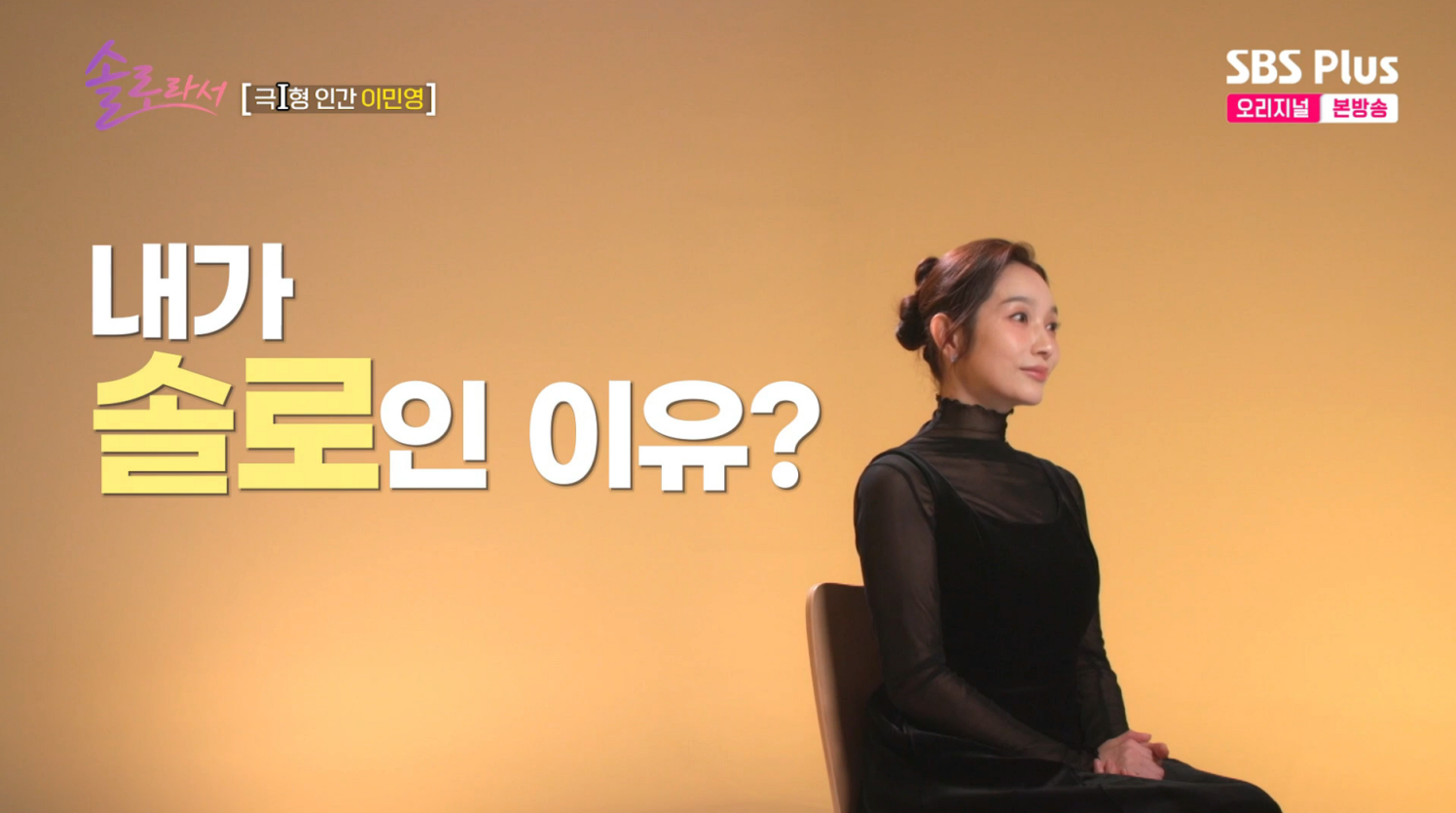 이민영이솔로생활이익숙하다고밝혔다.iMBC연예뉴스사진iMBC연예뉴스사진4일방송된SBSPlus,E채널'솔로라서'에서는배우이민영이자신을솔로기간을가늠할수없는사람이라고소개했다.지난2006년결혼12일만에파경을맞이하고솔로생활을이어오고있는이민영은솔로인이유에대해"제가새로운사람을필요로하지않는것같다.집순이라새로운사람을만날기회도없고이런생활이지속되는게더자연스러웠던것같다"고말했다.이어그는"누군가와함께살면서행복을추구하지않는것같다"고하면서도평생혼자살것인지묻자"마음은항상열려있다.왕자님이뚝떨어져야하는데"라고덧붙였다.한편SBSPlus,E채널'솔로라서'는매주화요일오후8시40분방송된다.iMBC연예백아영|사진출처SBSPlusCopyright©MBC연예.무단전재및재배포,AI학습금지.