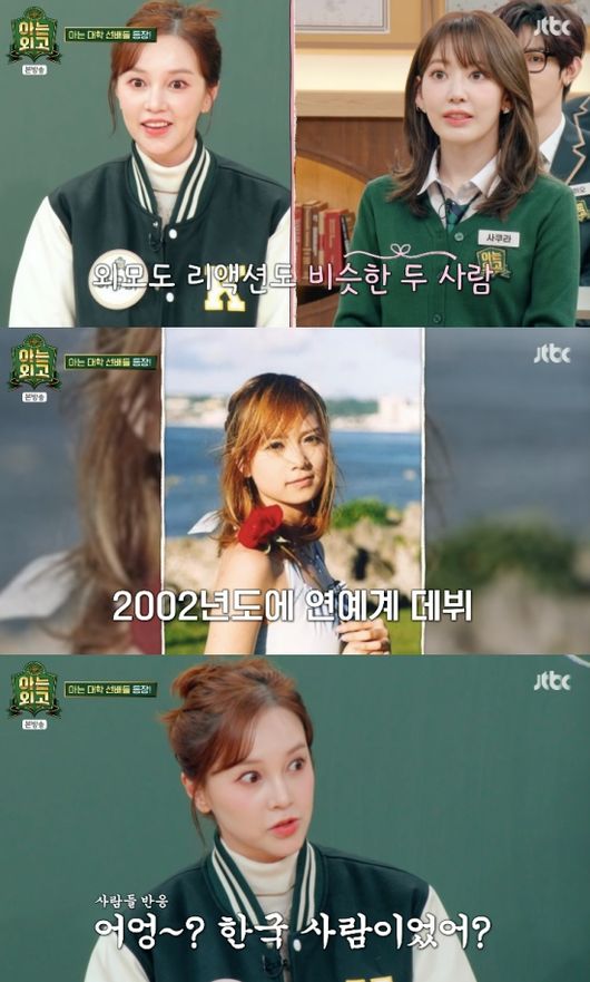 [OSEN=임혜영기자]아유미가전주이씨라고밝혔다.4일방송된JTBC‘아는외고’에는외국인예능선배아유미,닉쿤,줄리안,파비앙이출연했다.아유미는국적에대해이야기하면서“일본에서태어나긴했지만나는전주이씨다.2002년도에데뷔를했다.계속이얘기를했는데‘한국사람이었어?’반응이다”라고답답해했다.아유미는일본인후배들을응원하냐는말에“내가데뷔를했을때는거의일본사람이없었다.내뒤로강남,사유리가나왔는데,다잘돼서좋다.(사쿠라가)가장잘된것같아서가장보고싶었다”라고말했다.아유미는“2002년월드컵때데뷔했는데일본을응원할건지한국을응원할건지묻더라.말잘못했다가는큰일날것같았다.심판응원하겠다고했다”라고말해웃음을자아냈다./[email protected][사진]JTBC‘아는외고’Copyright©OSEN.무단전재및재배포금지.