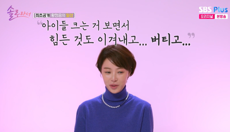 ▲사진|'솔로라서'방송화면[스포티비뉴스=배선영기자]배우황정음이이혼을결심한이유를털어놨다.4일오후방송된SBS플러스,E채널예능프로그램'솔로라서'에서황정음은두아들왕식,강식을최초로공개했다.이날황정음은"너무많은일들이있었는데,이제하나하나다해결해나가면서하루하루왕식이,강식이랑소중한시간을잘보내고있다.아이들크는거보면서힘든것도이겨내고버티고있다"라고밝혔다.이어그는"되게간단한것같다.행복하지않아서"라며이혼사유를밝혔다.황정음은"결혼하고난후에는원래좋았던제기운이우울하고나쁜기운으로변하는것같아너무힘들었다.아이들은그런기운을느끼면안되지않나?제가(이혼을)선택할수밖에없었다.아이들에게미안하다는말로는표현이안되는게있다"라고해안타까움을자아냈다.▲사진|'솔로라서'방송화면그는8세큰아들왕식에대해"엄청착하고순하다.든든한첫아들이다"라고말했고,4세강식에대해서는"애교도많고흥도많다"라고말했다.이날황정음은46억자택도공개하고나섰다.2층전원주택인집에대해황정음은"지금살고있는집은사실사무실이었다.이혼이순식간에벌어진일이라갑자기집이필요했다.저도제가이혼할줄몰랐다.다행히세입자가나가는시기였고이사무실에서살게됐다"라고설명했다.<저작권자ⓒSPOTVNEWS.무단전재및재배포금지>Copyright©스포티비뉴스.무단전재및재배포금지.