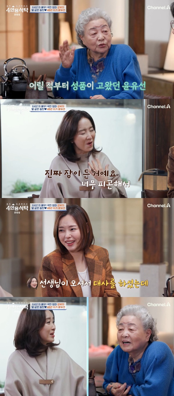 4인용식탁/사진=채널A4인용식탁[스포츠투데이백지연기자]'4인용식탁'강부자가윤유선과의오랜인연을자랑했다.3일저녁방송된채널A예능프로그램'4인용식탁'에강부자가등장해저친이하늬,윤유선,조우중이절친으로등장했다.이날방송에서강부자는윤유선과40년이넘은인연이라고막했다.강부자는"과거유선이랑드라마에서호흡을맞출때줄담배를피우는할머니역할이었다.손녀호흡을맞췄다.얼마나착한지엄마말을그렇게순종했다.그래서내가보다가'너는내가며느리삼을거다'이런말을하기도했다.눈에거슬린적이한번도없었다"라고칭찬했다.이어"근데아들이먼저결혼을했다"라고전했다.윤유선은"다컸는데도예뻐해주신다.나를정말예쁘게봐주신게감사하다"라고알렸다.[스포츠투데이백지연기자[email protected]]Copyright©스포츠투데이.무단전재및재배포금지.