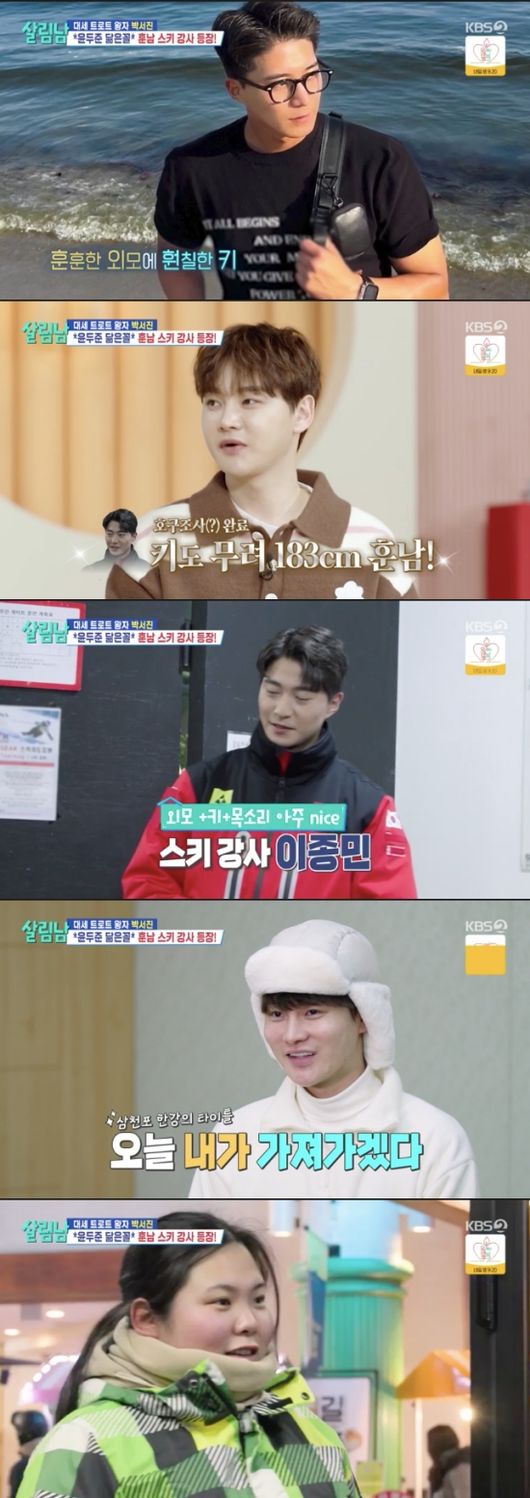 [OSEN=임혜영기자]박서진이훈남스키강사를보고반가워했다.1일방송된KBS2TV'살림하는남자들시즌2'(이하'살림남')에는윤두준닮은꼴훈남스키강사가등장했다.박서진과동생은스키복과장비를빌린후스키강사와마주했다.훈훈한비주얼을가진강사의등장에박서진의눈빛이달라졌다.은지원또한훈남강사를보며“윤두준같은데?”라고말하며놀라워했다.박서진은“키도엄청크다.183cm”라고강사에대해설명했고스물셋대학생이라는말에동생과의열애설을만들기위해의미심장한미소를지었다.동생또한강사의비주얼을보고미소를감추지못했다.강사는동생을보더니“걸으실때불편해보여서부츠먼저확인해보겠다”라는친절을베풀었고,박서진은“너무좋아하는모습에재밌는그림이나오겠구나”라며장난칠생각에신난모습을보였다./[email protected][사진]KBS2TV'살림하는남자들시즌2'Copyright©OSEN.무단전재및재배포금지.