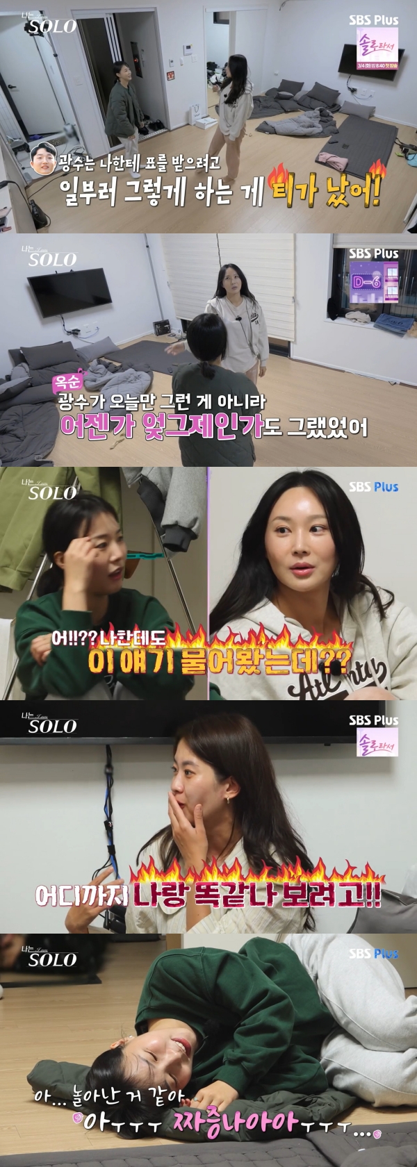 사진=ENA·SBSPlus[스포츠투데이김태형기자]24기옥순이광수의실체를폭로했다.26일방송된ENA·SBSPlus'나는솔로'에는24기옥순과광수가일대일데이트를마친뒤의모습이그려졌다.이날옥순은순자에게광수가편지를줬는지물었다.순자가맞다고하자옥순은"너무티났다.광수는나한테표를받으려고수작부린게티가났다.광수가오늘만그런게아니다"라며"순자한테그렇게이야기했다는걸모르는척,너무수작부리는게티나고말을장황하게돌려서말하더라"라고폭로했다.순자는"그런데언니(광수가)편지준건어떻게알았어?"라고물었다.옥순은"광수가말했다.순자한테쓴다고는안했지만난순자라고생각했다"고답했다.판도라의상자가열린가운데,여자들이모여대화가시작됐다.옥순은"'데이트권이있으면나한테써야지.왜순자한테썼어?'했더니말을횡설수설하더라.말에핵심이없고내가듣기에는'뭔X소리하고있어?'였다.그래서내가데이트를해서파보고싶었다"고설명했다.이어"'이거촬영끝나고옥순님한테카톡하고싶다','나에대한이야기를알고싶다'고하더라.'전화해도돼?'라고하더라"라고말했다.이에순자는충격을받아"저녁에데이트하고와서바로나한테안심시켜주듯이너를좋아해,너한테직진할거라고하더라"라며"사기당한느낌"이라고토로했다.옥순이"나한테사귀면스킨쉽어떠냐고하더라"라고하자,정숙도같은경험을했다고맞장구쳤다.순자는"놀아난것같아.짜증나"라며좌절했다.[스포츠투데이김태형기자[email protected]]Copyright©스포츠투데이.무단전재및재배포금지.